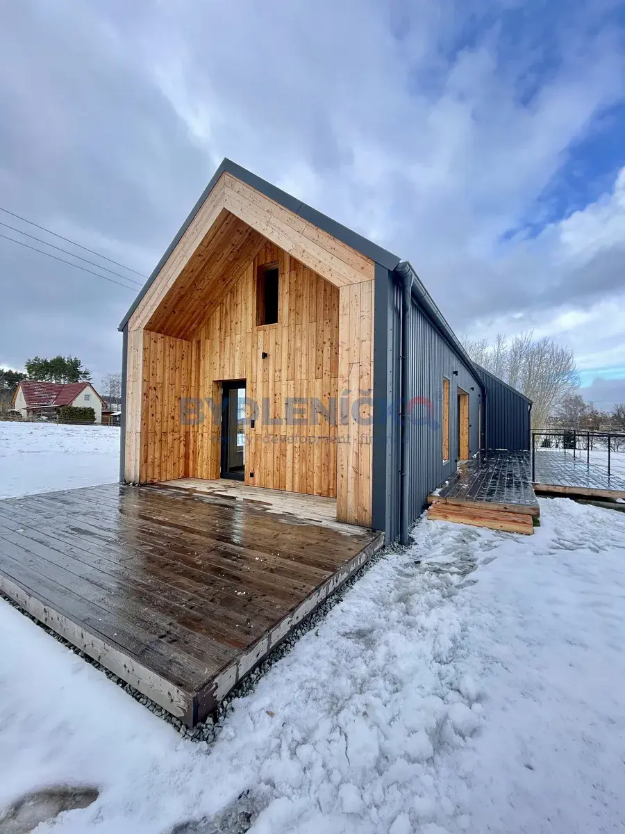 Dispozice domu je 2kk s užitnou plochou 74m2. Dům se skládá z obývacího pokoje s kuchyňským koutem, ložnice, koupelny a technické místnost. Velkým benefitem jsou dvě galerie v obytném prostoru, které lze využít například jako pracovnu, hernu, relaxační zónu nebo prostor pro příležitostné přespání. K domu taktéž náleží dvě terasy o celkové ploše 48 m², zahrada o rozloze 1 000 m² a dvě parkovací stání. Součástí terasy je také zajímavý prvek v podobě otužovací vany.