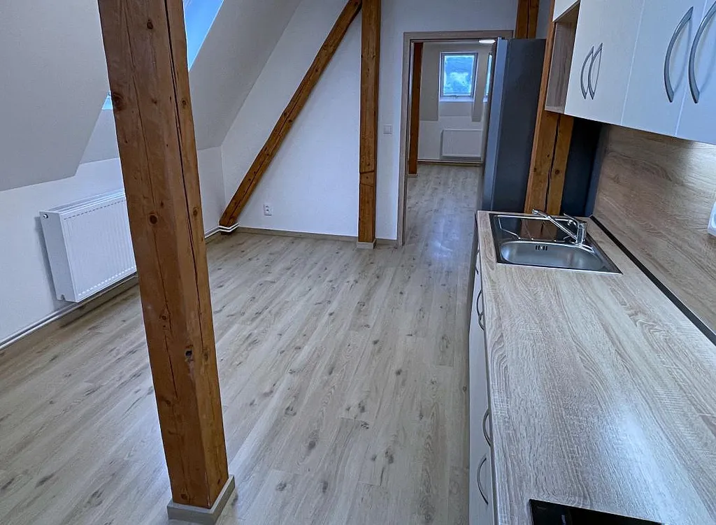 Nabízíme k dlouhodobému pronájmu komfortní byt o dispozici 1+1 a výměře 61 m² m, situovaný v podkroví kompletně zrekonstruovaného Villa domu kulturní památky v prestižní a klidné části centra města.
