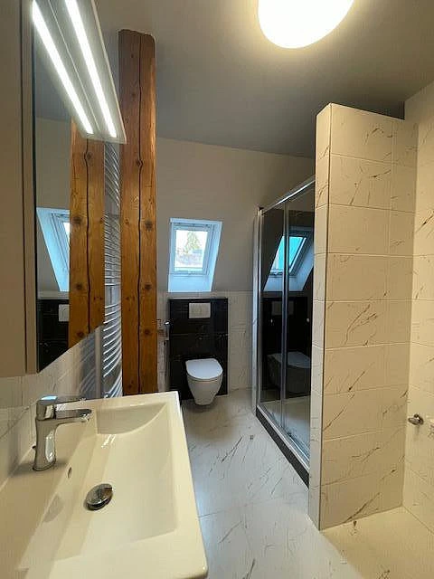 Byt je v osobním vlastnictví, nově vybudovaný v rámci citlivé rekonstrukce historického objektu. Dům je bez výtahu.