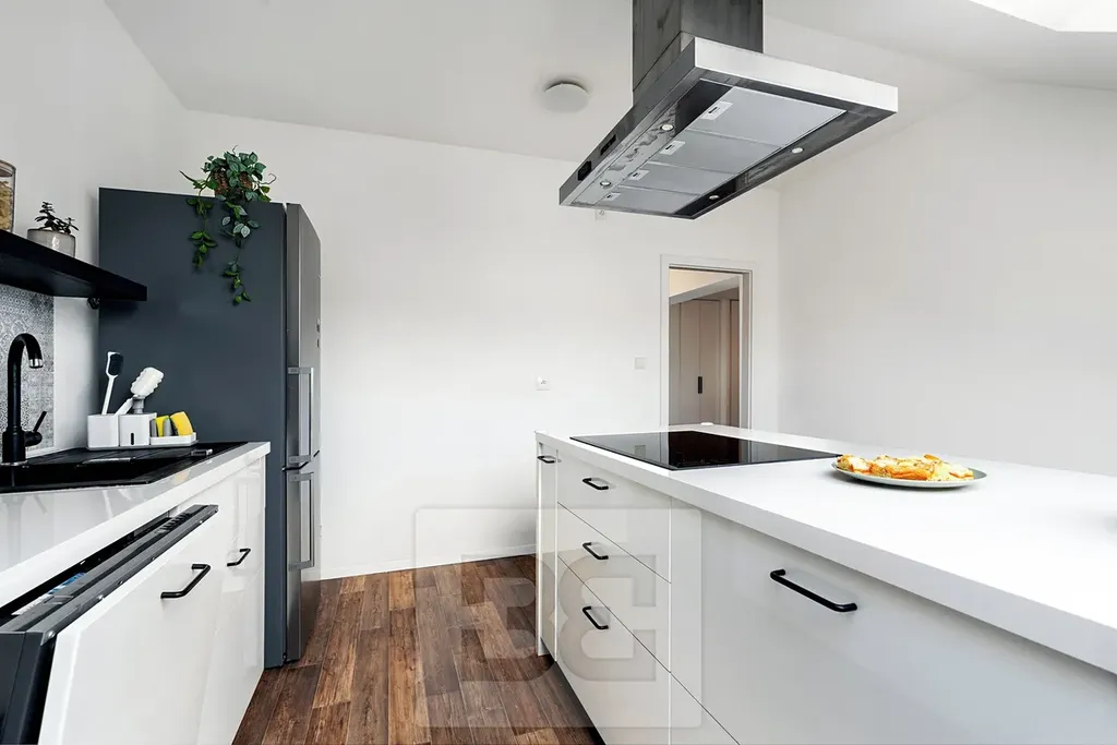 • Kuchyně (15 m2): Samostatná místnost s kuchyňskou linkou a středovým ostrůvkem dávají bohatý prostor na vaření. Vybavena novými spotřebiči (varná deska, ostrůvková digestoř, vestavná trouba). Dále je zde myčka a prostor pro volně stojící lednici.