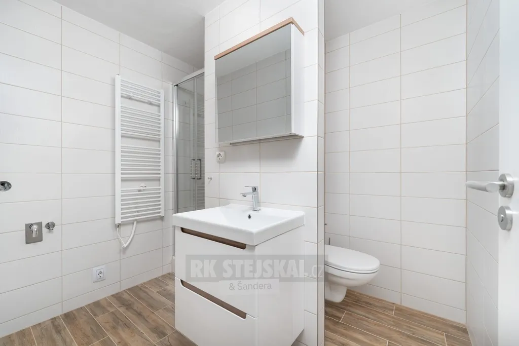Byt je částečně zařízený. Součástí je moderní kuchyňská linka s vestavěnými spotřebiči – trouba, varná deska, myčka a digestoř. Koupelna je vybavena sprchovým koutem a WC. V bytě jsou nové podlahy, rozvody i sanita.