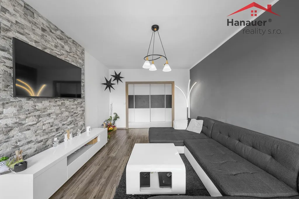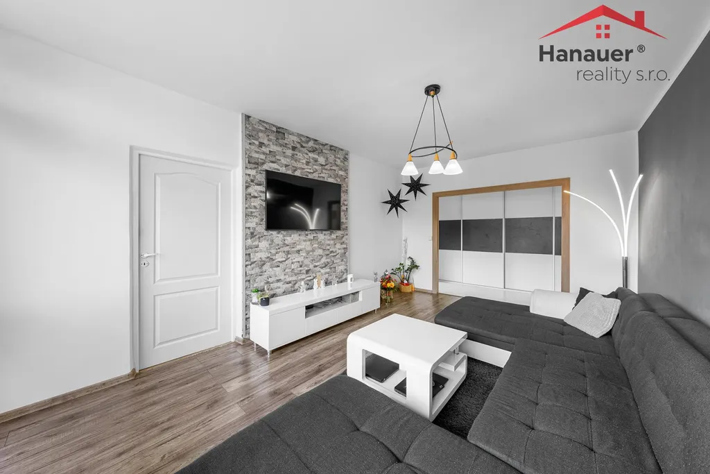 Dispozičně je byt řešen jako 3+1 a nabízí prostornou vstupní chodbu s vestavěnými skříněmi, moderní obývací pokoj, ložnici, dětský pokoj a koupelnu s WC. Příjemným benefitem je lodžie. K bytu náleží také sklepní kóje.
