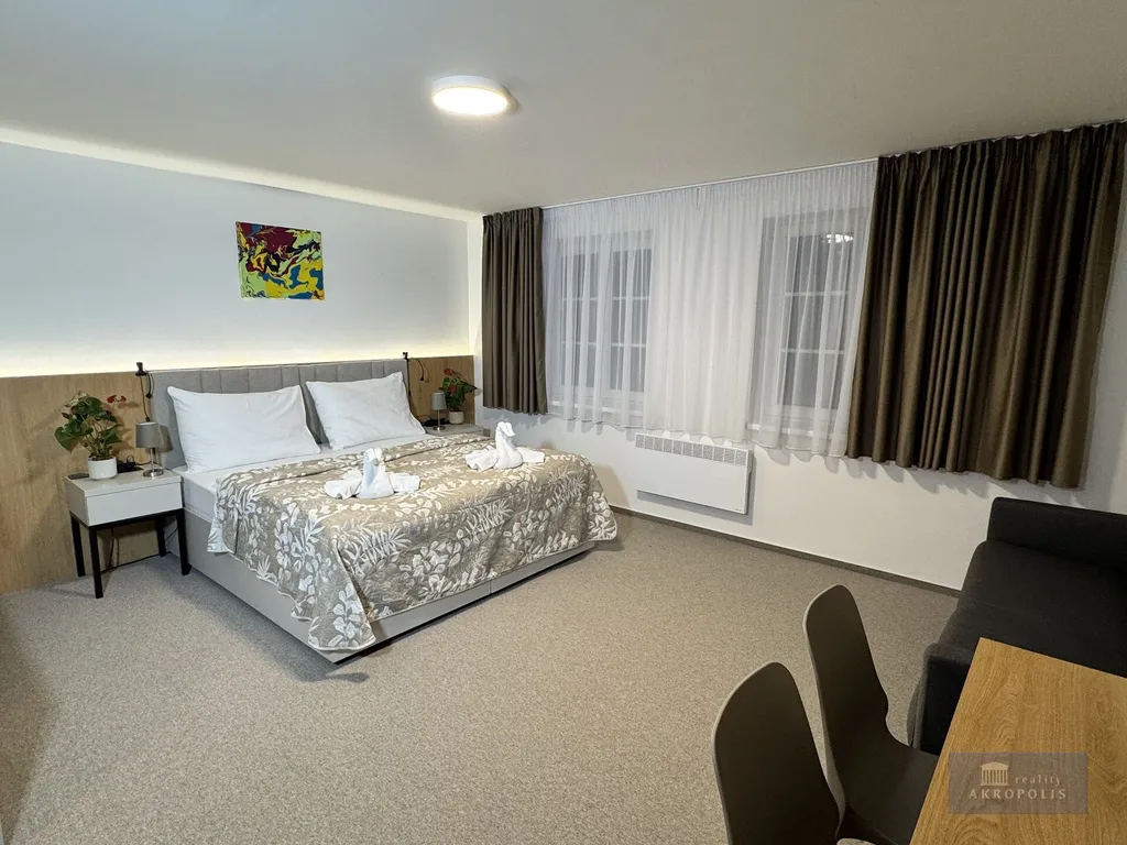 Součástí pronájmu je také ubytovací zařízení, které výrazně rozšiřuje podnikatelský potenciál objektu. K dispozici je 9 designových pokojů a jeden prostorný apartmán s celkovou kapacitou 29 lůžek. Každý pokoj disponuje vlastní koupelnou, zakázkovým nábytkem a moderním vybavením, některé mají balkon s výhledem na Pálavu. Apartmán je ideální pro rodiny nebo dlouhodobější pobyty.