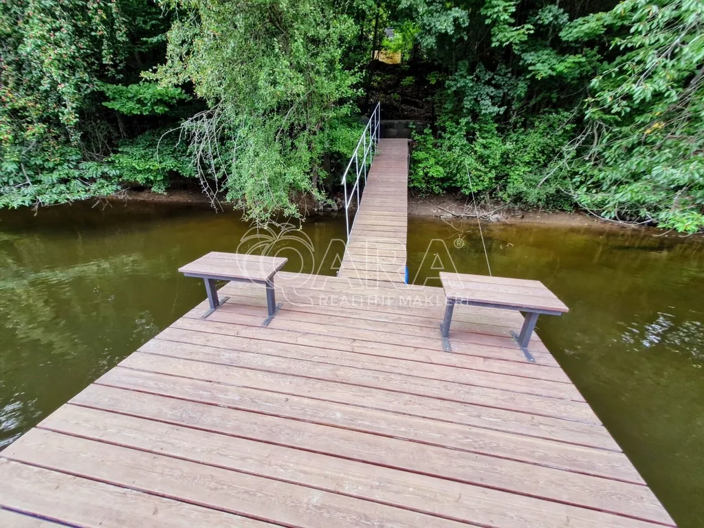 Pozemek o rozloze 1 400m² se svažuje k vlastnímu molu, od kterého se pohodlně dostanete "lanovkou" - oficiálně vozíkem taženým stavebním vrátkem pro dvě osoby až k domu. Objekt má kromě lodě pochopitelné také přístup také autem přes vjezdovou bránu na dálkové ovládání.