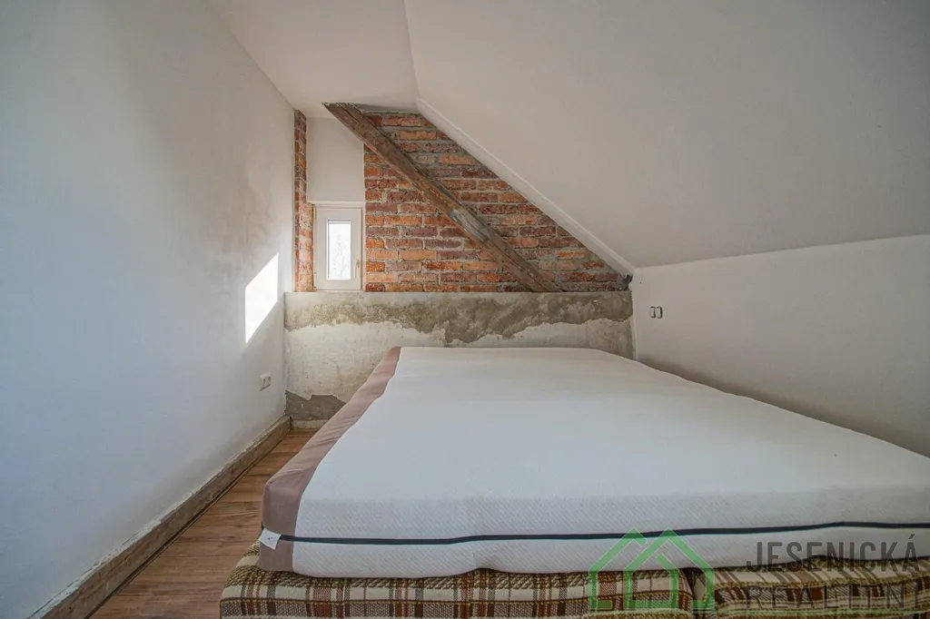 Ve druhém podlaží jsou čtyři pokoje, které jsou momentálně v rekonstrukci. V hřebeni půdního prostoru se nachází další místnost vhodná k přespání, rovněž v započaté rekonstrukci. Dům tak nabízí možnost úprav dle vlastních představ.