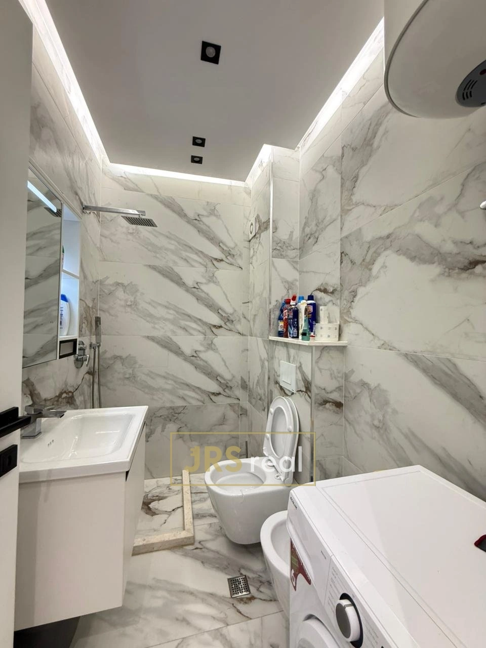 Ve výhradním zastoupení majitele nabízíme k prodeji plně vybavený byt o dispozici 2+kk s prostornou verandou v oblíbené přímořské lokalitě Golem v Albánii. Byt o vnitřní ploše 36 m² je situován v nově postaveném bytovém domě z roku 2025, který je vybaven výtahem. Při vstupu do bytu Vás přivítá chodba s předsíňovým setem, ze které je hned za vchodovými dveřmi vstup do koupelny. Koupelna je vybavena umyvadlem se zrcadlem, úložnými skříňkami, sprchovým koutem, WC, bidetem a pračkou. Z chodby se dále vstupuje do hlavní obytné části bytu, která je tvořena obývacím pokojem propojeným s kuchyňským koutem. Kuchyňská linka je vybavena vestavěnou troubou a sklokeramickou varnou deskou. Obývací část je zařízena pohovkou, televizí, jídelním stolem a židlemi. Z obytné části je vstup do samostatné ložnice, která je vybavena postelí, nočními stolky, šatní skříní a klimatizací. Součástí bytu je veranda o výměře 51 m², která výrazně rozšiřuje užitný prostor bytu a nabízí ideální místo pro odpočinek či venkovní posezení. Byt je díky své poloze vhodný jak pro vlastní bydlení u moře, tak i jako zajímavá investiční příležitost. V případě zájmu o tuto nemovitost kontaktujte makléře.
