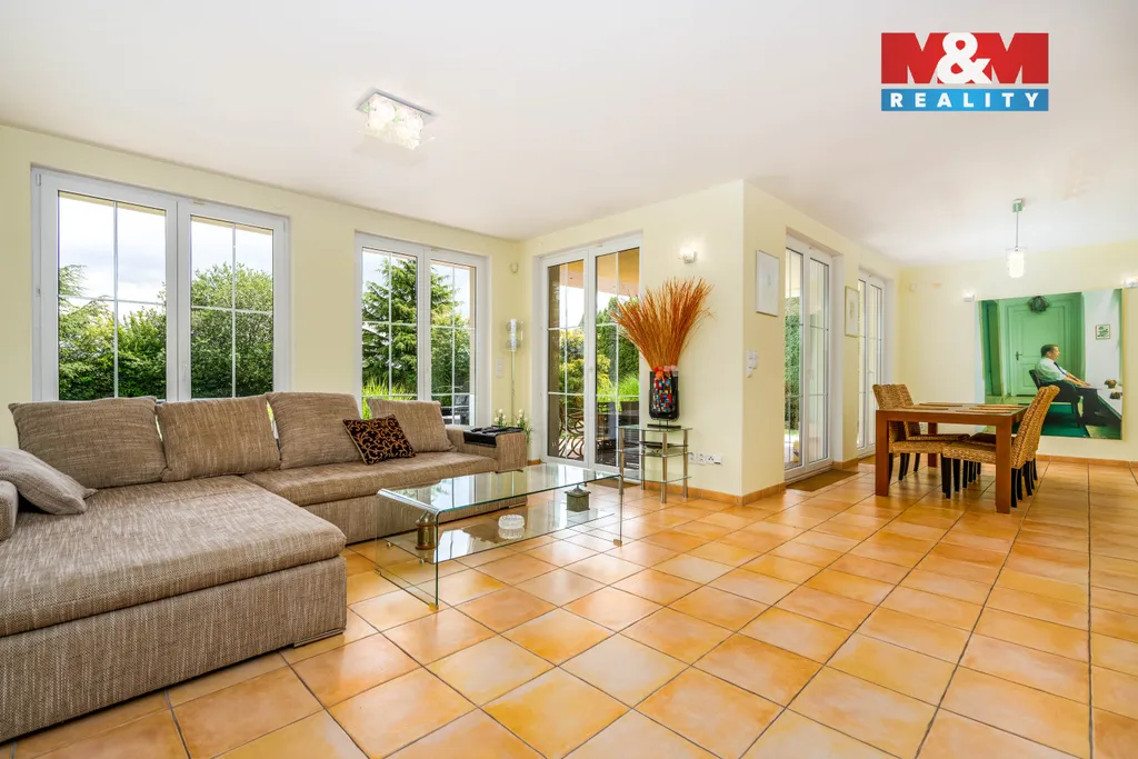Nabízíme k prodeji prostorný rodinný dům v příjemné části Ořechu, s umístěním na okraji obce, což zajišťuje klid a soukromí. Dům stojí na pozemku o výměře 1097 m² a celková užitná plocha je 262 m² (včetně garáže pro 2 auta o ploše 57 m²). Interiér je uzpůsoben potřebám současného majitele a dispozičně je řešený jako 3+kk s možností předělání do původní dispozice 5+kk. Pro volný čas a relaxaci je připraven bazén na zahradě, sauna a solárium v patře. Tato nepřehlédnutelná nemovitost nabízí komfortní bydlení pro rodinu hledající prostor a soukromí s rychlým spojováním do přírody i města. Kousek od obce se nachází Radotínské údolí, přímo v obci pak mateřská a základní škola, obchody a restaurace. Spojení do Prahy zajišťuje autobus MHD, který jezdí na stanici metra B - Luka. Pro více informací kontaktujte makléře