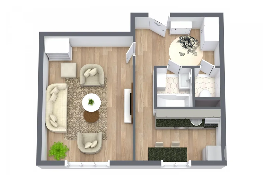Jednou větou: fajn byt 1+1 za slušnej peníz, kde se můžeš hned nastěhovat.