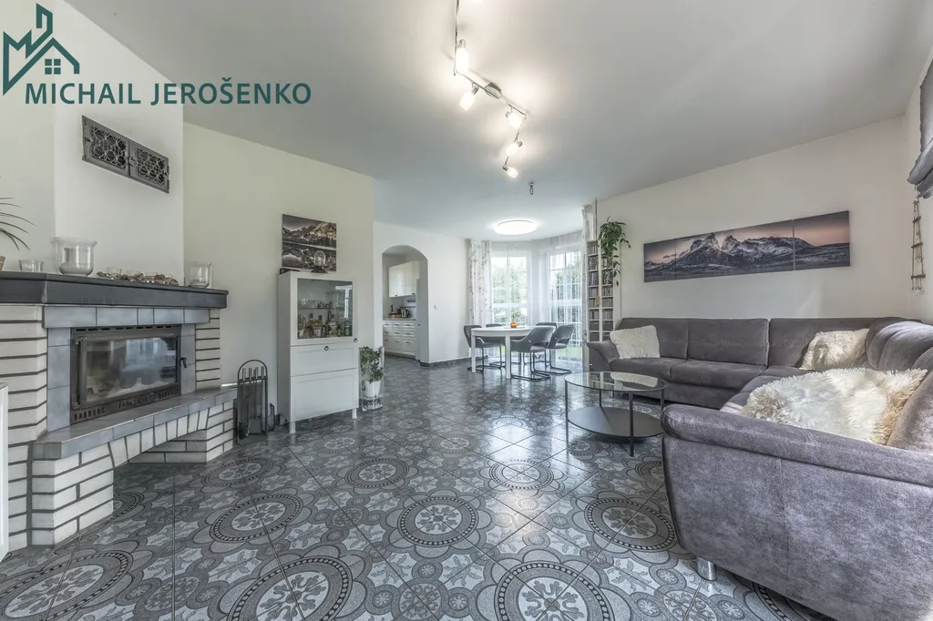 • přízemí: prostorný obývací pokoj s krbem a navazujícím kuchyňským koutem, v chodbě praktická spíž, samostatná toaleta.