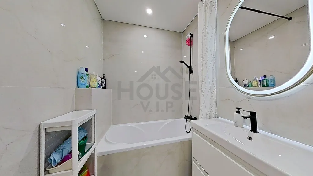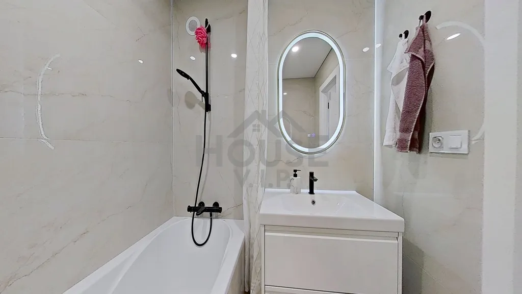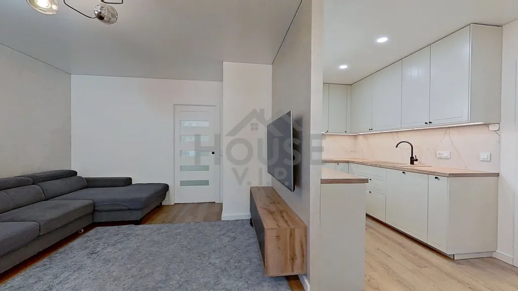 Dominantou bytu je velký obývací pokoj se vstupem na lodžii a prostorným kuchyňským koutem s plně vybavenou moderní kuchyňskou linkou ve tvaru „U“. Dále je zde ložnice s lodžií a vlastní koupelnou se sprchovým koutem a WC, další dva pokoje, koupelna s vanou, samostatné WC, prostorná chodba, nadstandardní komora a technická místnost s přípojkou na pračku. K bytu náleží sklep v přízemí domu a k dispozici je také společná místnost pro kočárky a jízdní kola. Energetický štítek G uvádíme proto, že zatím ještě nebyl dodán.