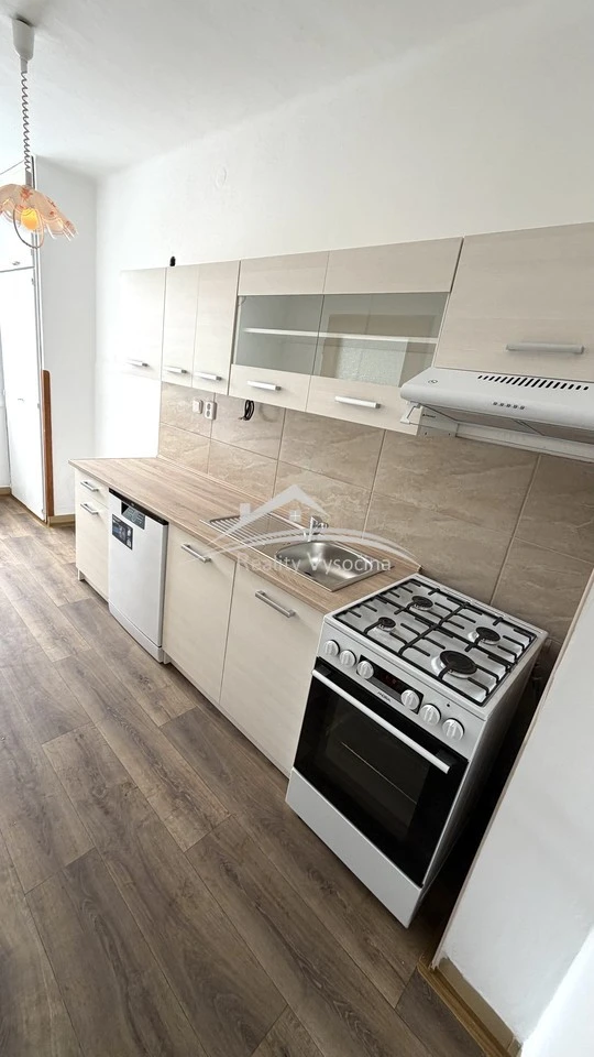 Byt prošel částečnou rekonstrukcí – nová kuchyňská linka je vybavena plynovým sporákem, digestoří a myčkou, položeny jsou nové vinylové podlahy. Ohřev vody zajišťuje plynová karma, vytápění plynový kotel umístěný v technické místnosti.