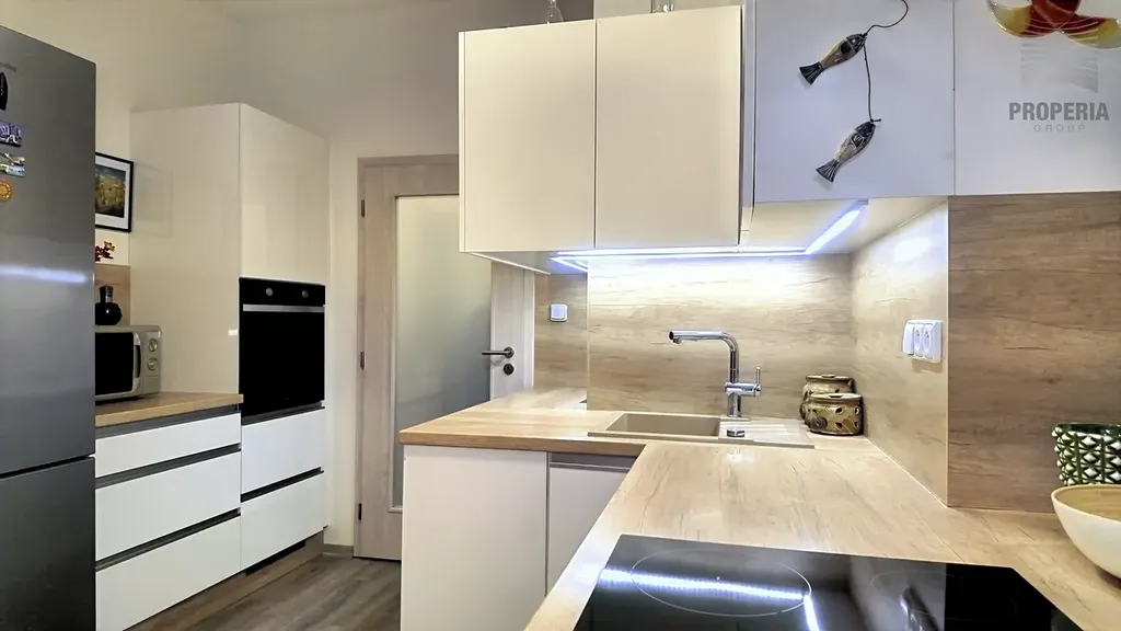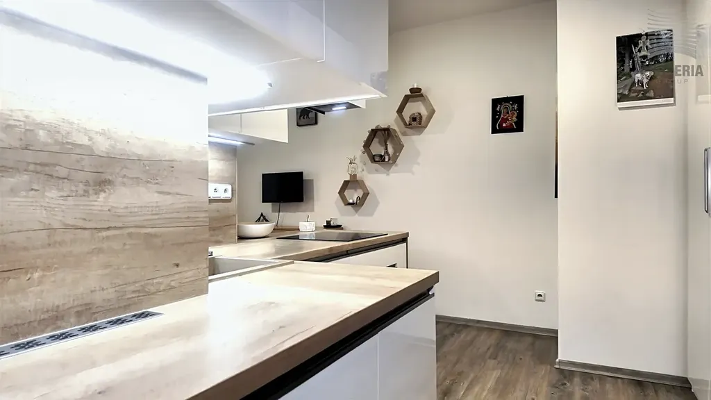 Prodej krásného bytu s terasou 1+kk o CP 50 m² v OV, Hustopeče, ul. Mrštíkova. Nachází se v cihlové novostavbě z roku 2018/19 s výtahem do sklepa a k zadnímu vchodu. Byt byl dokončen a upraven v nadstandardu dle požadavků první a jediné majitelky, seznam použitých materiálů a vybavení ráda dopošlu mailem. Celý prostor interiéru 35 m2 je výborně dispozičně řešený, vzdušný, vybaven vkusným nábytkem a kvalitními spotřebiči. K bytu náleží velkorysá terasa (15m2) se vstupem z obývací části - bylo zde plánované celozasklení s hliníkovou konstrukcí, které se už nestihlo zrealizovat, zděný sklep - největší v budově. Nachází se ve velmi žádané části Hustopečí s veškerou dostupností služeb, parkování před domem v modrých zónách. Byty tohoto typu se v centru velmi dobře pronajímají, a to i na Airbnb s velmi zajímavým výdělkem. Jedná se o velmi příjemné a klidné bydlení, prohlídky kdykoli po domluvě s makléřkou.
