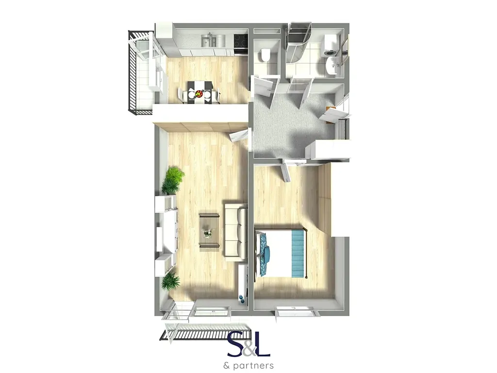 Byt zaujme především praktickým dispozičním řešením a dvěma balkóny, které výrazně zvyšují komfort bydlení – jeden navazuje na obývací pokoj a druhý, zasklený, je přístupný z kuchyně. Dispozici tvoří prostorná předsíň a odsud se dostanete do samostatné ložnice, prostorného obývacího pokoje, kuchyně s kuchyňskou linkou a plynovým sporákem, koupelny se sprchovým koutem a samostatného WC. K bytu náleží také sklepní kóje pro praktické uložení věcí.