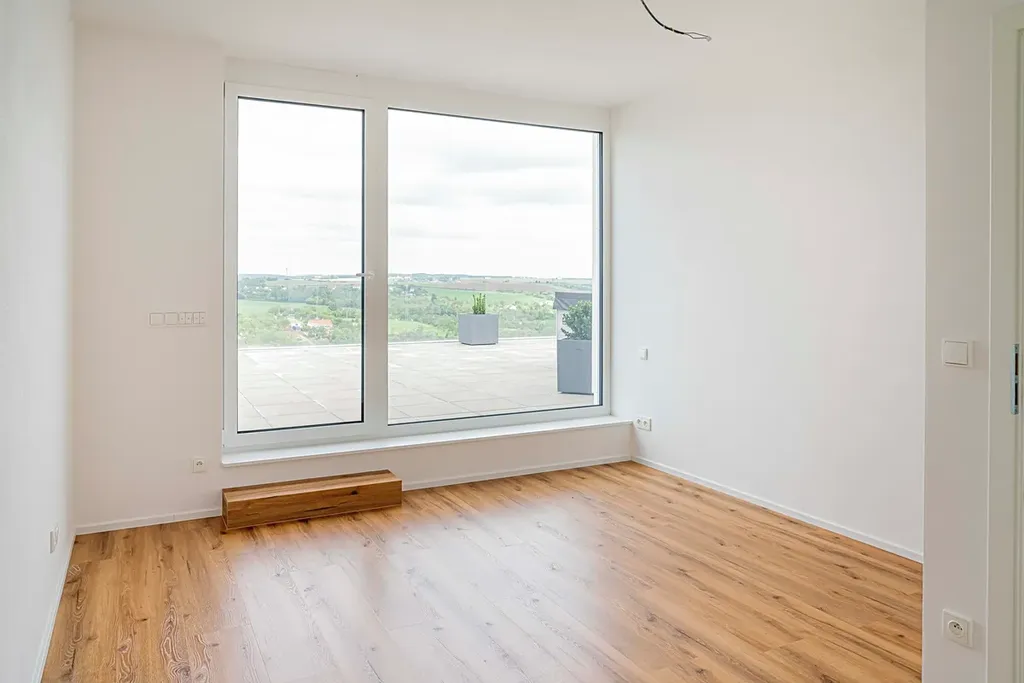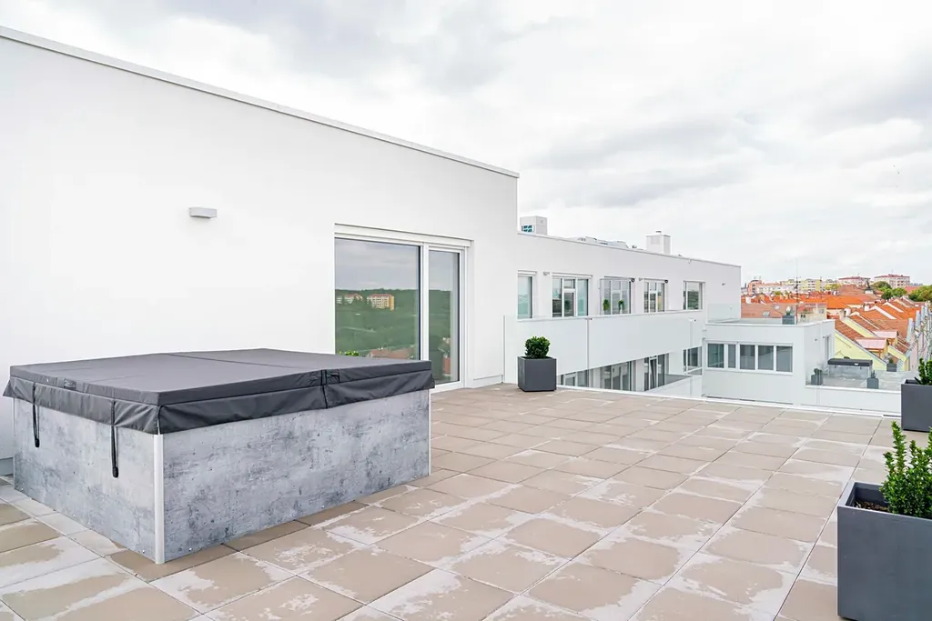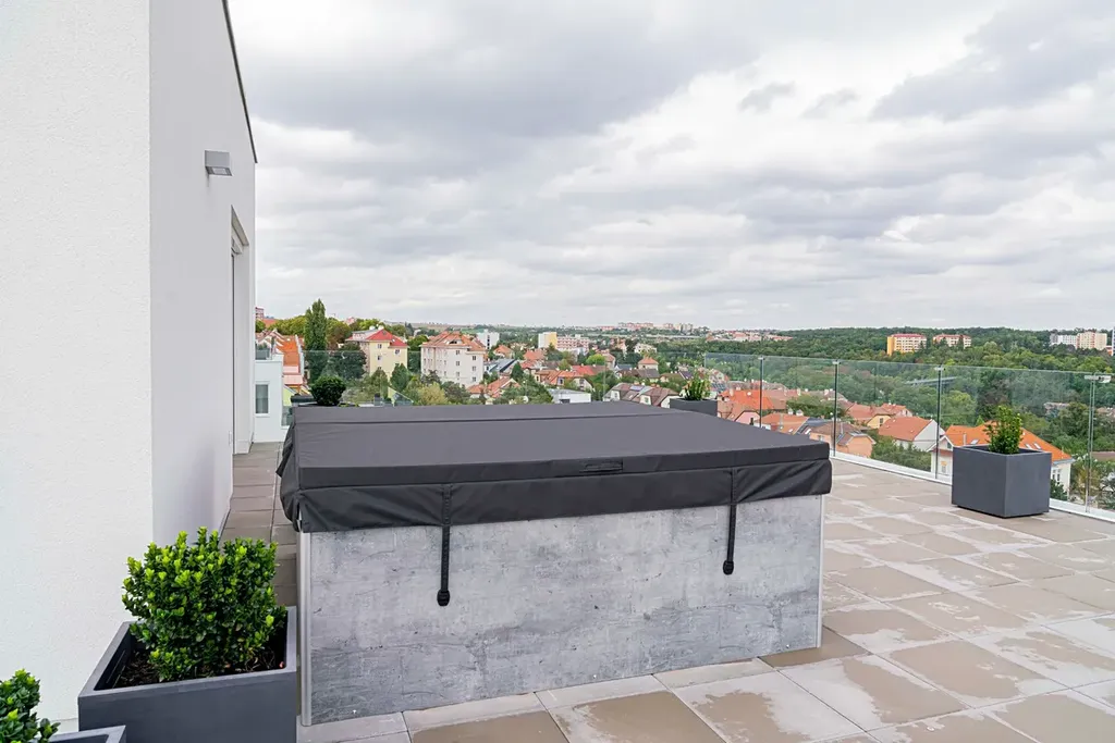 Komfort zajišťuje chytrý video domovní telefon, elektrická markýza a předokenní rolety. V každém pokoji nechybí klimatizace, a na terase vás čeká prvotřídní jacuzzi s výhledem, který je ve Znojmě zcela ojedinělý a to do všech světových stran.