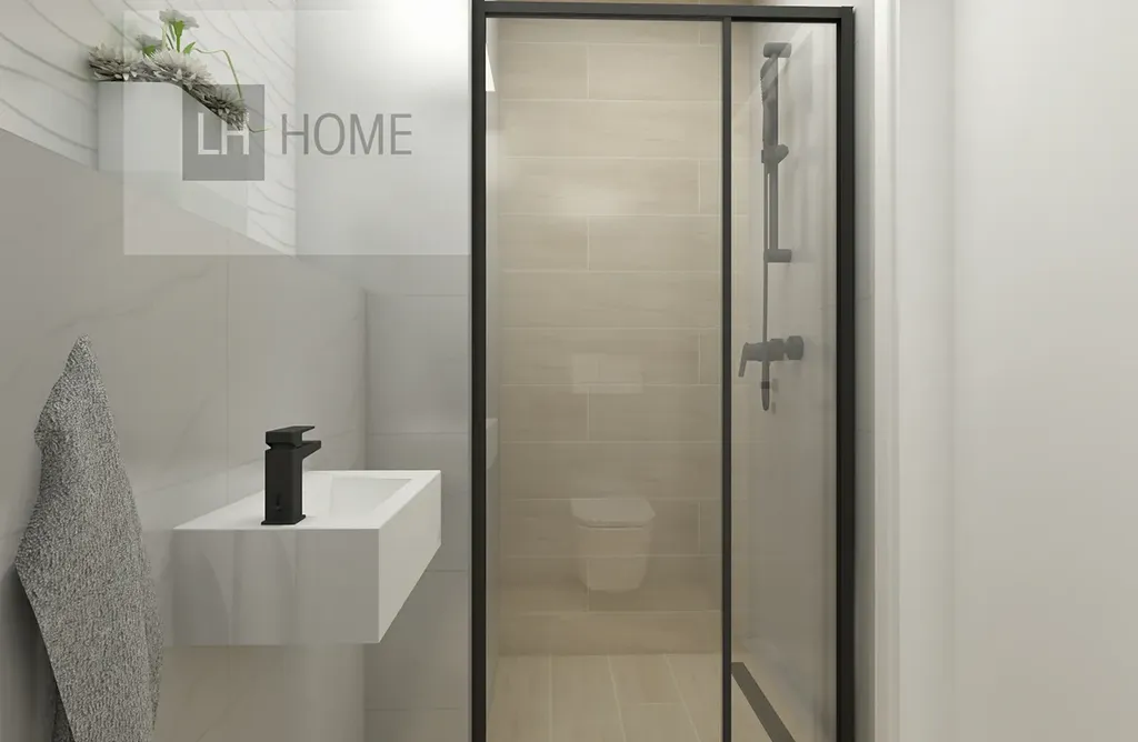 vinylové podlahy, obklady a dlažby, prostorný sprchový kout a vana, koupelnová skříňka, topný žebřík, závěsné WC, interiérové dveře, videotelefon, předokenní rolety.