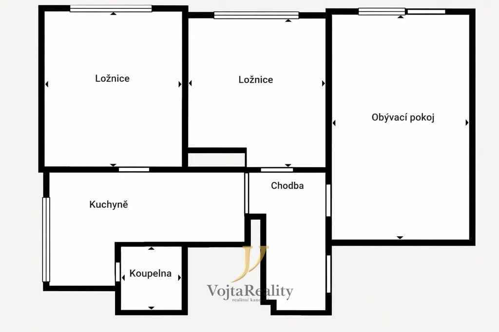 Dispozice bytu zahrnuje vstupní chodbu s botníkem, prostorný obývací pokoj se vstupem na lodžii, samostatnou kuchyni s novou kuchyňskou linkou, dvě neprůchozí ložnice, koupelnu s vanou a samostatná toaleta s pračkou. Zděné jádro zajišťuje vyšší komfort bydlení.
