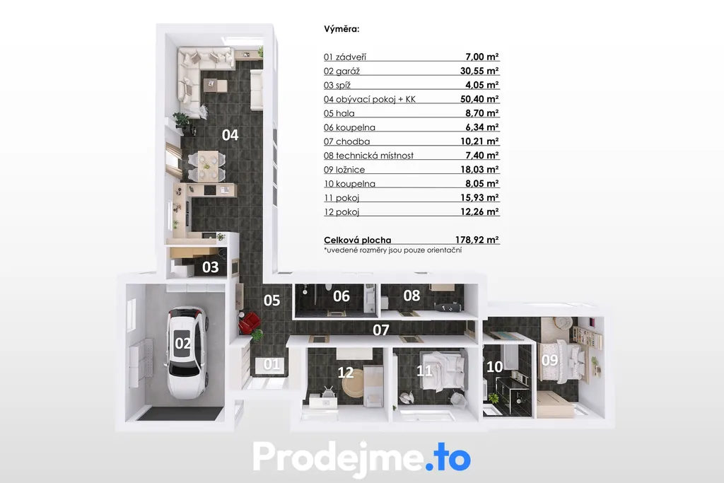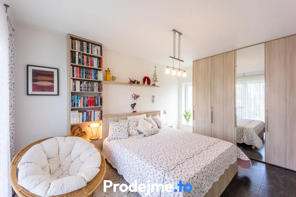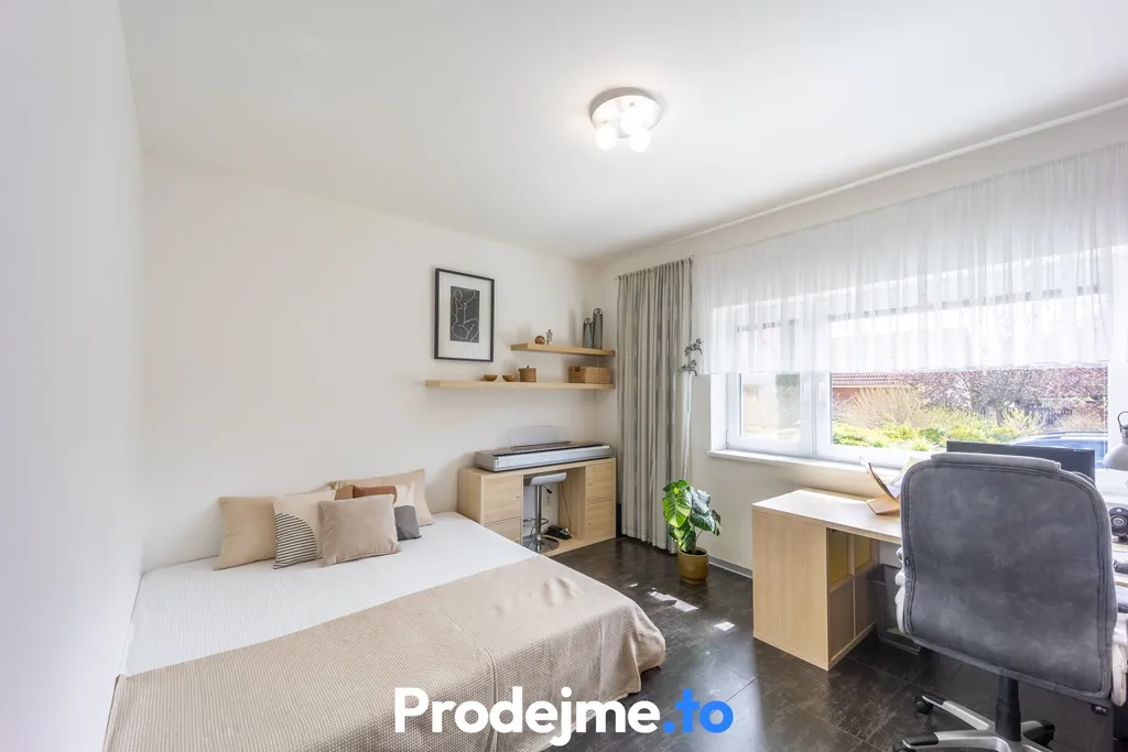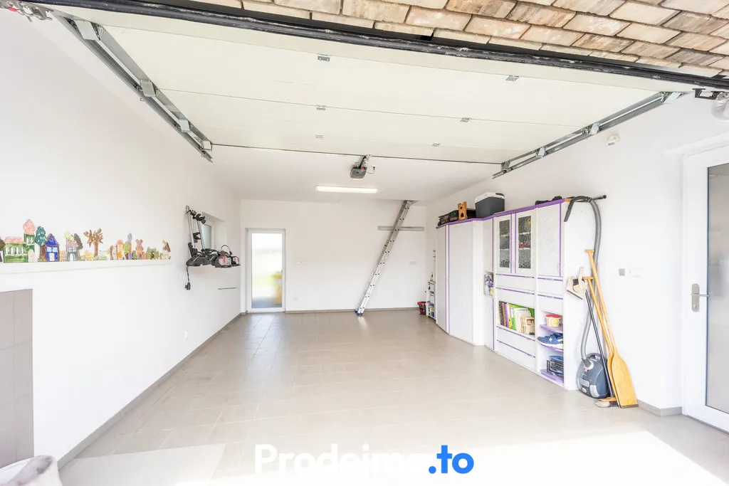 Kromě reprezentativní společenské části dům nabízí velkou ložnici (18 m²) s vlastním vstupem přímo do zahrady, dětský pokoj a pokoj pro hosty. Aby ranní shon probíhal v naprostém klidu, máte k dispozici hned dvě koupelny. Hlavní, větší koupelna, vás potěší vanou, sprchovým koutem, toaletou i bidetem. Druhá koupelna disponuje sprchovým koutem a toaletou. Nechybí ani praktické zázemí v podobě prostorné haly, spíže a technické místnosti s východem ven.