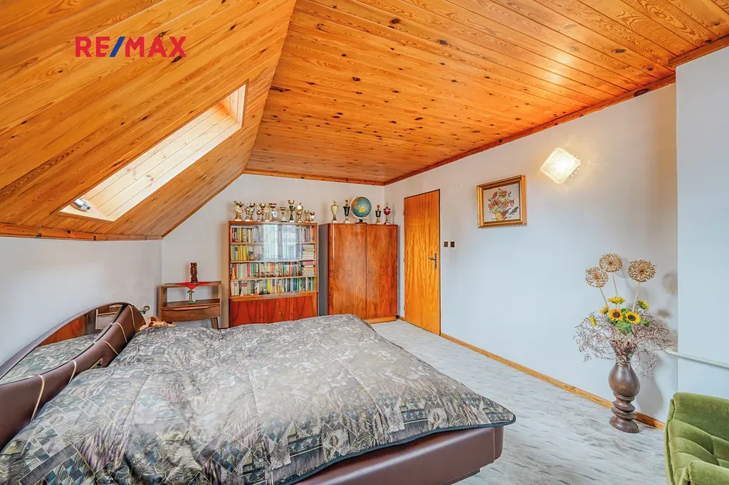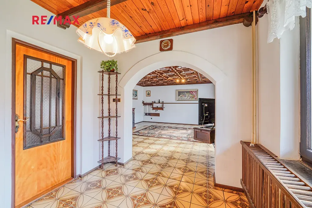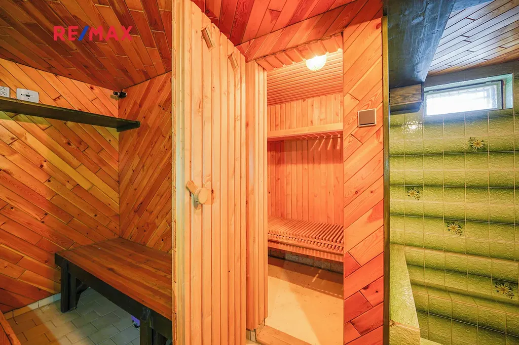 V 1. podlaží máte obývací pokoj se vstupem na verandu, kuchyni, prostornou jídelnu, chodbu, toaletu a je zde také garáž, z níž je možný přímý vstup do domu. Ve 2. podlaží najdete ložnici, koupelnu s vanou, samostatnou toaletu se sprchovým koutem a další 2 pokoje, které lze využít například jako obývací pokoj a pracovnu. Dominantou domu je prostorná terasa z přední strany domu a krytá lodžie s terasou ze zadní strany domu. V suterénu domu najdete welness se saunou a ochlazovacím bazénem, tři prostorné sklepy pro ukládání věcí nebo potravin, dále se zde nachází také prádelna, kotelna a dvě dílny. Další garáž s dílnou je umístěna za domem jako samostatně stojící.
