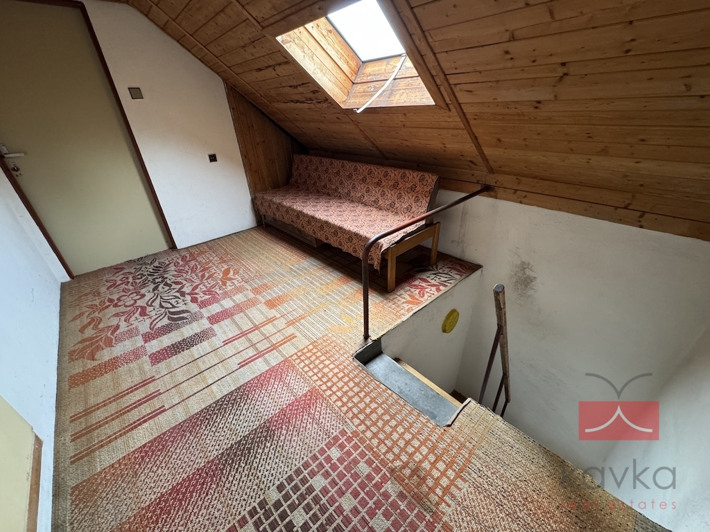 Podkroví: chodba, další pokoj, půdní prostory a skladové místnosti.