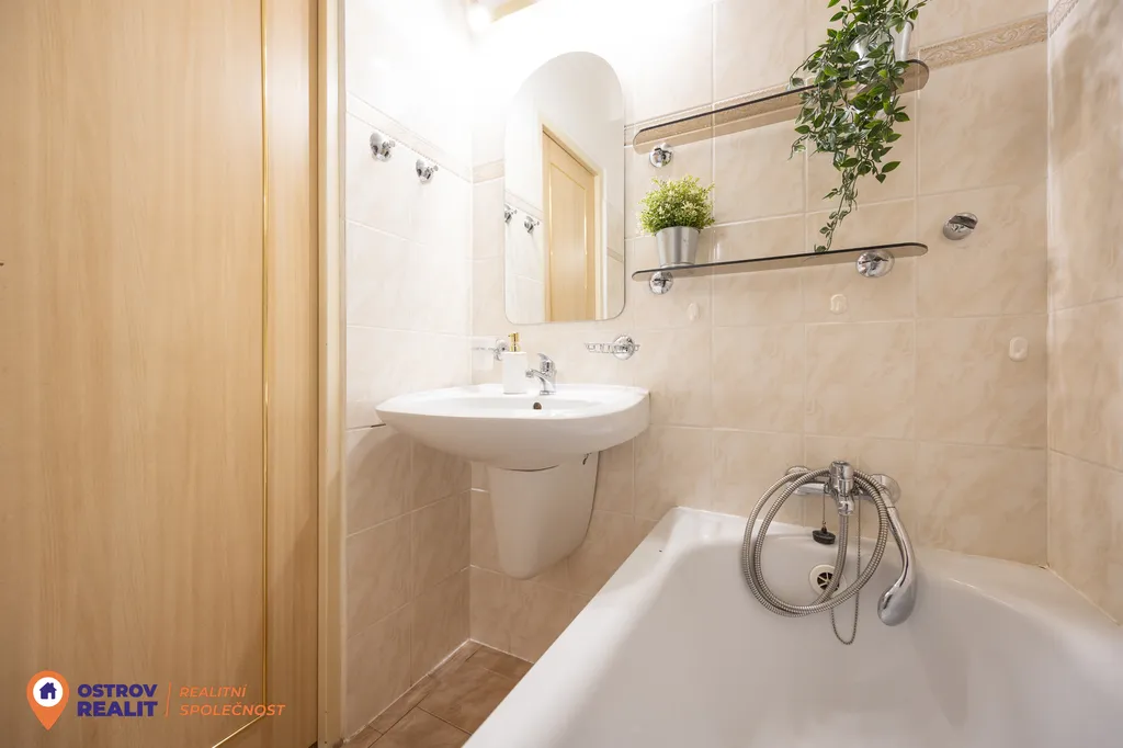 Součástí bytu je samostatná kuchyně, která nabízí dostatek místa pro jídelní kout, praktická komora pro uložení potravin či domácích potřeb, koupelna s vanou, samostatné WC a prostorná vstupní chodba s místem pro velkou vestavěnou skříň.