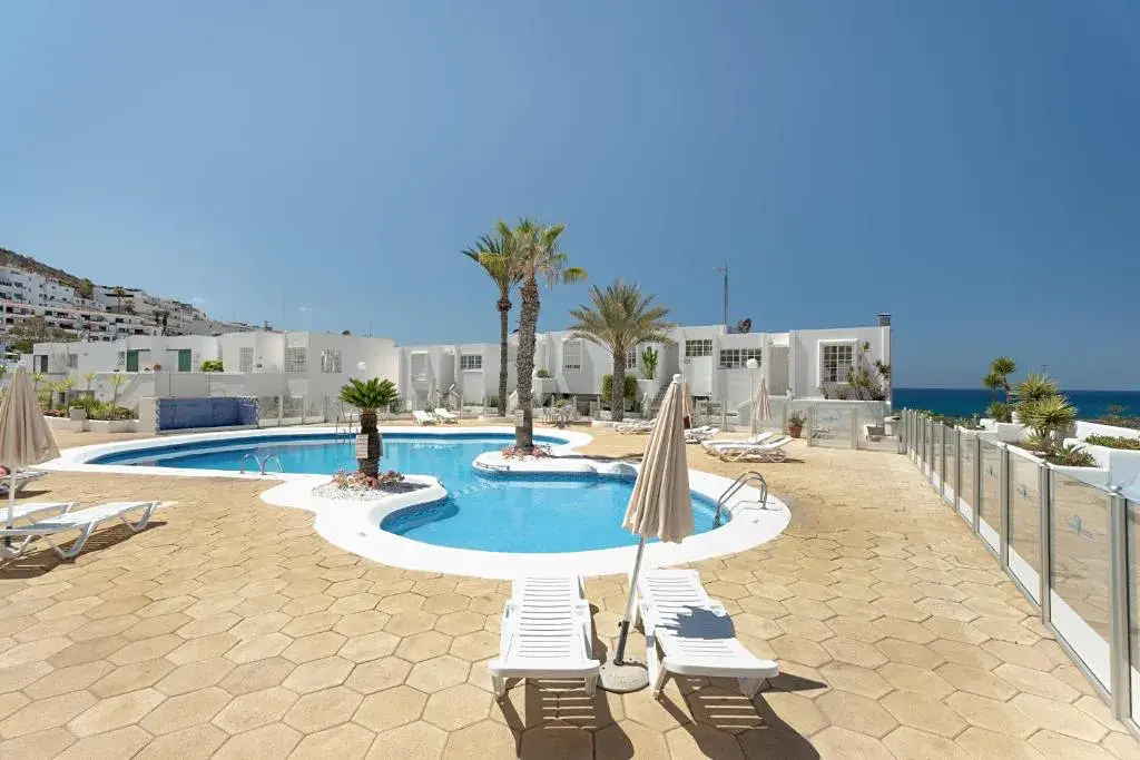 K prodeji nabízíme elegantní apartmán o velikosti 90 m², situovaný v jedné z nejvyhledávanějších lokalit jižního Tenerife – v blízkosti prestižní Golden Mile, jen pár kroků od oceánu, pláže, restaurací a promenády v komplexu Azahara. Apartmán se nachází v udržovaném rezidenčním komplexu z roku 1982 a nabízí světlý, vzdušný interiér s promyšlenou dispozicí. Při vstupu vás přivítá vstupní hala vedoucí do otevřeného obytného prostoru, který propojuje obývací pokoj, jídelnu a moderní kuchyň vybavenou kvalitními spotřebiči. Nemovitost disponuje dvěma ložnicemi – hlavní ložnice je prostorná, plná denního světla a má vlastní koupelnu (en suite), druhá ložnice je rovněž světlá a orientovaná do klidné části komplexu. K dispozici je také druhá koupelna a samostatná toaleta pro hosty. Velkou předností je prostorná krytá terasa se zasklením, která nabízí ideální místo pro relaxaci po celý rok. Terasa je vybavena automatickými markýzami, které zajišťují maximální komfort, stín i soukromí. Rezidenční komplex nabízí moderní výtahy, komunitní bazén se sluneční terasou a udržované zahrady. Díky své poloze v blízkosti Golden Mile máte na dosah vše – pláže, restaurace, nákupní centra i kompletní občanskou vybavenost. Tato nemovitost je ideální jako trvalé bydlení i druhý domov u oceánu v jedné z nejžádanějších částí Tenerife.