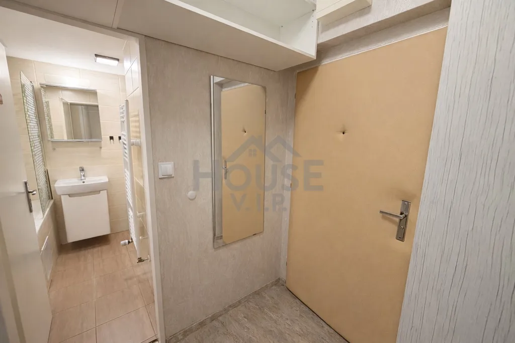 Dispozice zahrnuje obývací pokoj s kuchyňským koutem, samostatnou ložnici, koupelnu s vanou, předsíň s úložnými prostory a lodžii s příjemným výhledem. Byt působí velmi čistě, vzdušně a je připraven k okamžitému nastěhování.