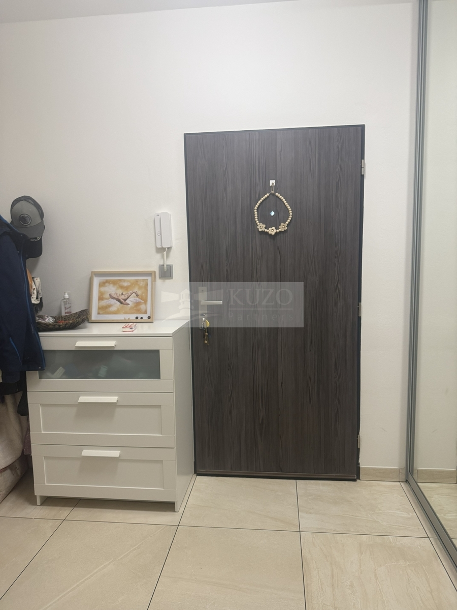 Jednou z předností bytu je přístupná předzahrádka z každé obytné místnosti. Dokončovací práce byly provedeny v nadstandardu (vinylová podlaha, dlažba Piemme - limestone v dekoru kamene, dveře Sapeli). Obývací pokoj je velkoryse navržen, aby bylo možné prostor rozdělit na část kuchyňskou, jídelní a odpočinkovou. Kuchyně byla navržena do tvaru L a je vybavena vestavěnými spotřebiči AEG. V bytě naleznete dostatek úložných ploch, které nijak nezasahují do obytných místností. První úložný prostor je ve vstupní chodbě v podobě vestavěné skříně. Další již samostatná šatna s vestavěným úložným systémem je přístupná taktéž z chodby a poslední šatní prostor patří k ložnici. Dalším bonusem je rozvedený internet do každé místnosti, optický kabel zavedený do bytu a pro venkovní prostor jsou umístěny rozvody na kamerový systém.