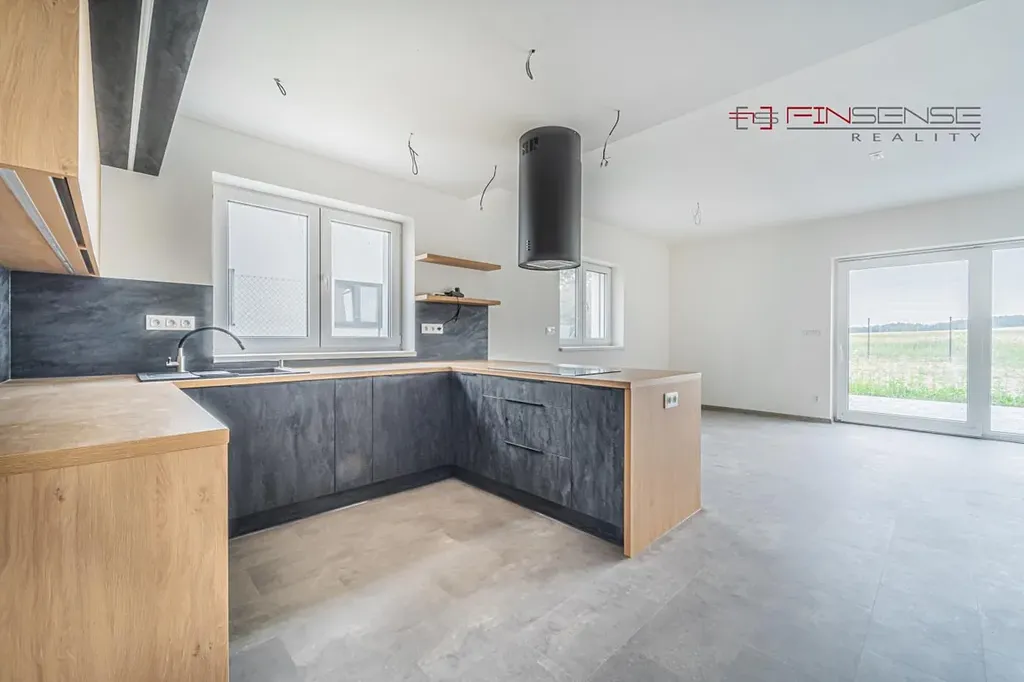 Nabízíme k prodeji polovinu dvojdomu 4+kk o výměře užitné plochy 114 m2 na pozemku o výměře 348m2 s terasou a dvěma parkovacími místy. Jedná se o výstavbu II. etapy výstavby 2 dvojdomů, která bude dokončena a zkolaudována ve 2. polovině 2026. Nepodsklepený rodinný dům má dvě nadzemní podlaží a nachází se na okraji obce Čelechovice. Stavba je provedena pečlivě s důrazem na kvalitu práce a výběru materiálů. V ceně domu je zahrnuto vybavení koupelen, podlahová krytina, dveře, zámková dlažba na terasu, parkovací stání a chodník. V ceně není zahrnuta kuchyňská linka. Dispoziční řešení: v přízemí je vstup, chodba, šatna, koupelna s WC, technická místnost, obývací pokoj s jídelnou a kuchyňským koutem a vstup na venkovní terasu. V 2.NP se nachází chodba, dva pokoje, ložnice, koupelna s WC a šatna. Vytápění a ohřev vody zajišťuje tepelné čerpadlo, v přízemí i v podkroví je podlahové vytápění. Plastová okna s izolačním trojsklem, bezpečnostní vchodové dveře. Poloha domů poskytuje dostatečné soukromí a klid k příjemnému bydlení. V této části obce je základní občanská vybavenost, velmi dobrá dopravní dostupnost do Prahy (20min autem, nájezd na D6 4km). Do kompletního servisu při koupi nemovitosti je zahrnuto výhodné financování. Další podrobnější informace s nahlédnutím do dokumentace při osobní schůzce.