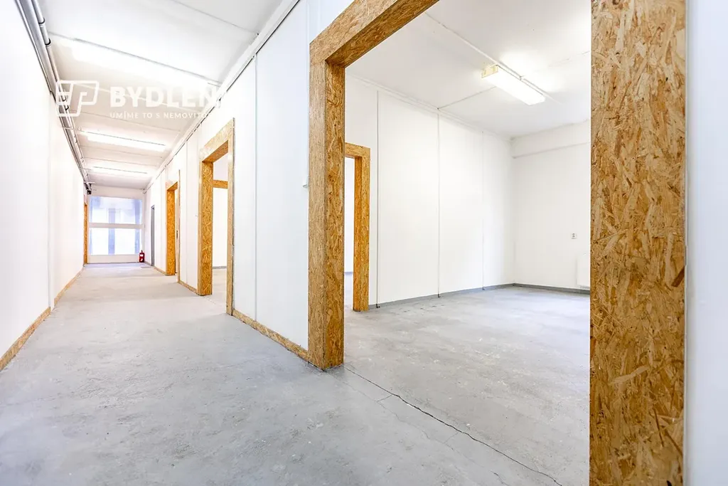 Dispozičně nabízí kancelář, kuchyňku, sociální zázemí (WC), tři menší průchozí sklady, jeden velký sklad a spojovací chodbu. Velkou výhodou jsou sekční vrata pro pohodlné zásobování a manipulaci se zbožím.