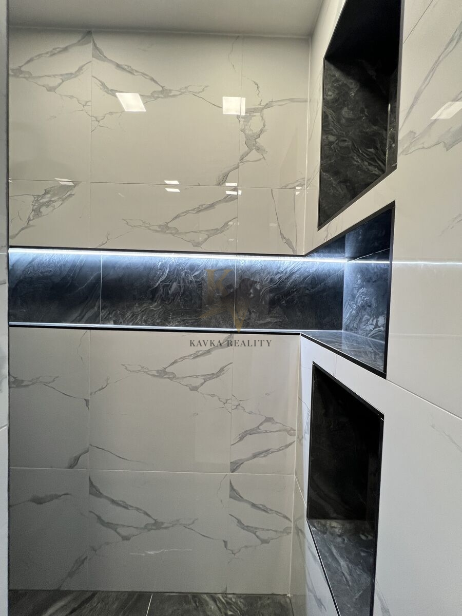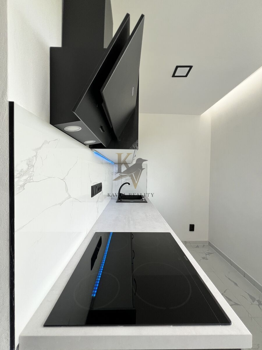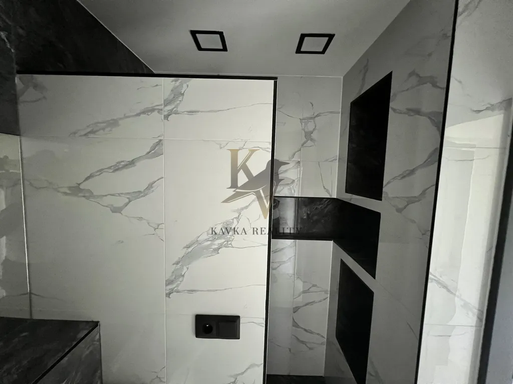 Je po kompletně moderní a nadčasově krásné rekonstrukci včetně nové kuchyňské linky s elektrospotřebiči ( sklokeramická varná deska s vestavěnou horkovzdušnou multifunkční troubou a odsavačem par vše kvalitní značky Gorenje a Whirlpool . ) Celá kuchyňská linka je v pěkném podsvícení , zabudovaného led pásku, který mění barvy. Koupelna a WC je zděná- rekonstruovaná- kde se nachází velký zděný sprchový kout osvětlený nikou s dekorativními policemi , ( ve sprše většinou poslouží jako neocenitelný úložný prostor pro šampon nebo sprchový gel, ve stěnách mimo ně slouží spíše jako police a má funkci dekorační – krásně se tady budou vyjímat květiny nebo třeba suvenýry z cest, či ručníky .) hranaté umyvadlo se skříňkou a zrcadlo zapuštěné v obkladu . Wc je závěsné značky Geberit . Krásná a kvalitní mramorová dlažba se nachází v kuchyni , chodbě v koupelně a na Wc . Ve zbylém pokoji se nachází plovoucí podlaha .