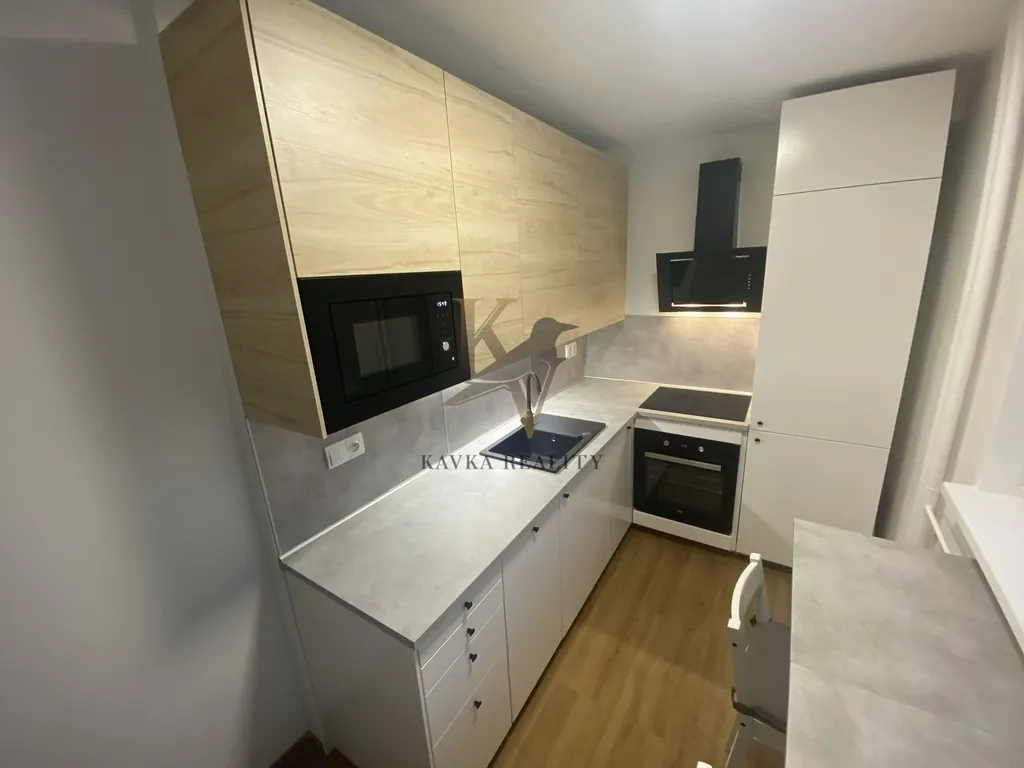 Je po kompletně moderní a krásné rekonstrukci včetně nové rohové kuchyňské linky s elektrospotřebiči ( sklokeramická indukční deska s horkovzdušnou troubou a odsavačem par, vestavěnou lednici, myčku a zabudovanou mikrovlnou troubou ) koupelna a WC zděná- rekonstruovaná- kde se nachází velký sprchový kout a přívod na pračku , která může byt součástí vybavení. Vinylová podlaha se nachází v kuchyni , chodbě a zbylých dvou pokojích, dlažba je v koupelně a na Wc .