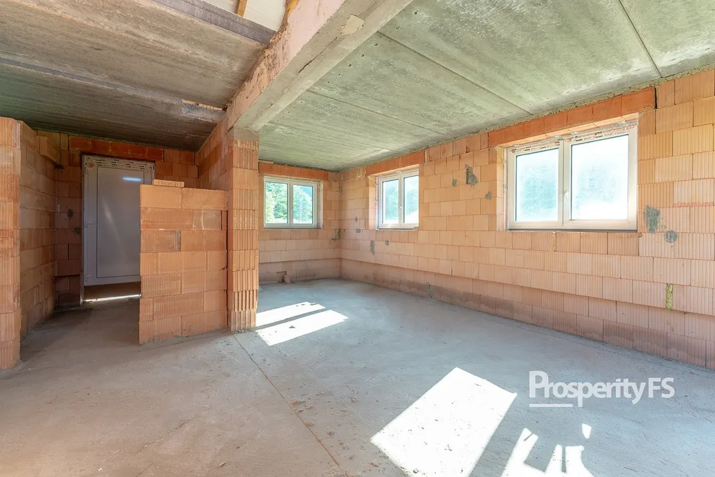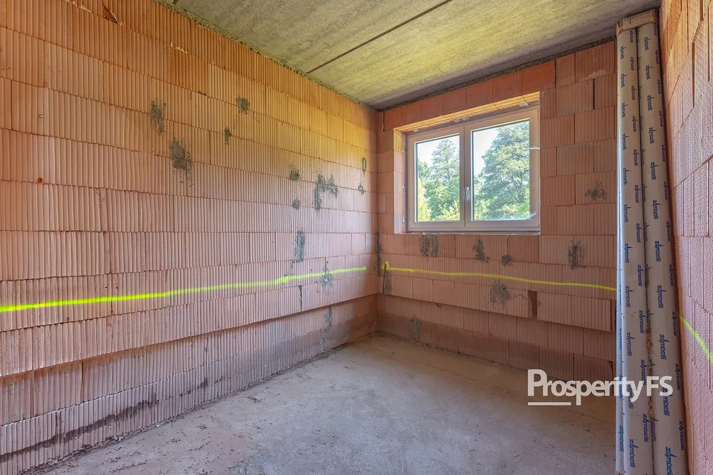 Stavba je realizována z kvalitních cihel Heluz Family 50 cm, které díky svým izolačním vlastnostem nevyžadují dodatečné zateplení. Osazena jsou plastová okna značky Sulko s trojsklem, střecha je z betonových tašek. K dispozici je také další stavební materiál – cca 3–5 palet cihel a komínový komplet.
