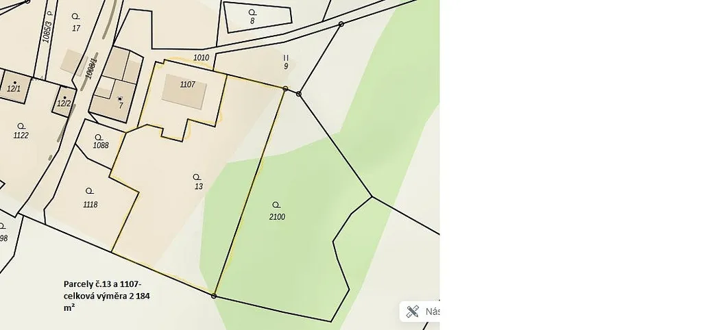 Vyznačené hranice jsou orientační podle katastrální mapy.