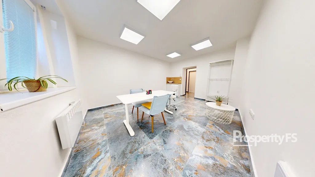 Součástí jsou i prostorné společné prostory o velikosti 24,4 m², kde najdete vše, co potřebujete pro komfortní provoz: lednici, kávovar, společné toalety a šatnu. Vaši klienti se k vám dostanou snadno a pohodlně díky vlastnímu telefonu propojenému se zvonkem u hlavního vchodu. Vchod se nachází u centra města na hlavní ulici Masarykova naproti fitness centru "Gymit.. "