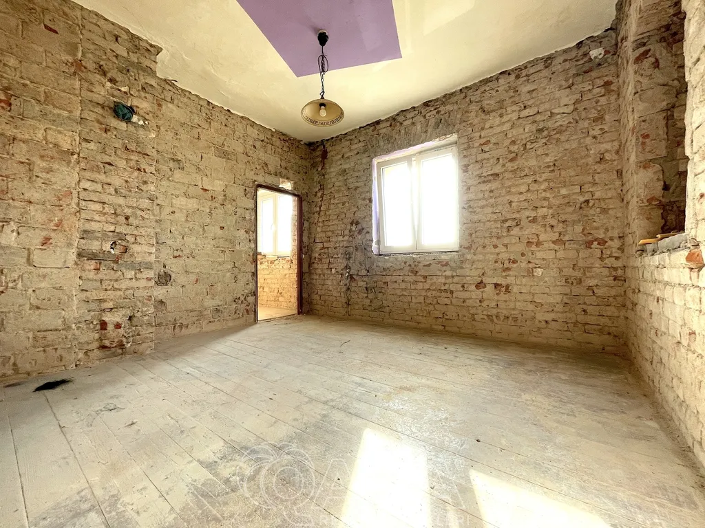 V domě jsou aktuálně připravené prostory pro dva samostatné byty s teoretickou dispozicí 1+1 nebo 2+kk. Spodní byt [37 m2] má klenuté stropy, je orientován na východ i západ, a má zastřešený vstup, který je vhodný k venkovnímu posezení. Zavedena voda, odpad i elektřina.