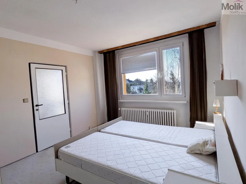Dispozice nabízí zajímavý potenciál a stávající koupelnu je možné rozšířit o část chodbičky u kuchyně a vytvořit tak komfortní a prostornější koupelnu podle současných trendů. Před domem jsou k dispozici hrazená parkovací místa (cena cca 300,-Kč měsíčně), zároveň je v okolí domu dostatek dalších možností parkování.