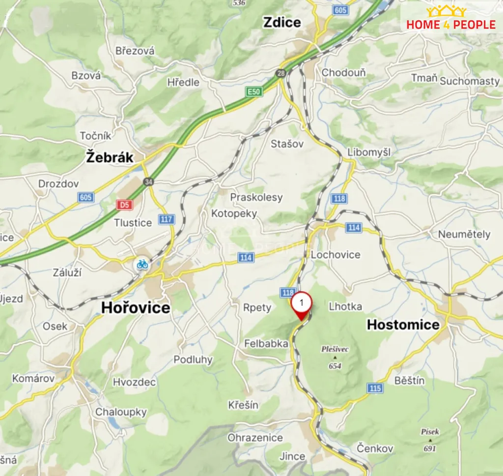 Bytový komplex se nachází 4 km od Lochovic, kde najdete občanskou vybavenost, obchody, MŠ, ZŠ, stejně tak v Jincích, které jsou vzdálené 8 km, obec Žebrák 10 km. Výhodná poloha umožňuje také rychlý dojezd, ca 12 km na dálnici D5 ve Zdicích s pokračováním dále směr Beroun, Praha či Plzeň apod.