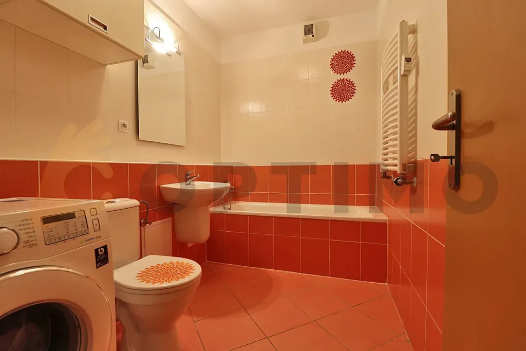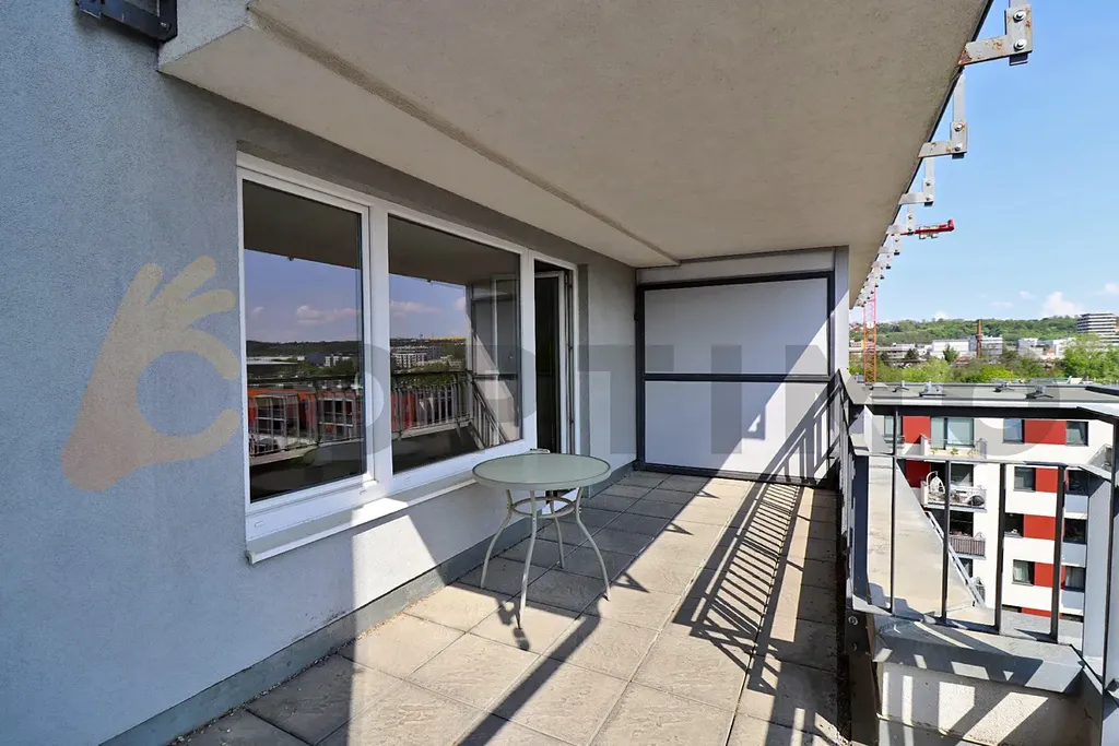 Byt (34,3 m2) s terasou (13,2 m2) je umístěn do 6. patra a je orientován na východ s krásným výhledem. Terasa je částečně zastřešená a tak ji lze i za nepříznivého počasí využívat. Byt je kompletně vybaven nábytkem a tak vám stačí si donést pouze osobní věci a můžete začít pohodlně bydlet. Kuchyňská linka nabízí vše co očekáváte (lednici s mrazákem, mikrovlnnou troubu, myčku, el. troubu, sklokeramickou desku a digestoř). Šikovně je řešen i úložný prostor, kdy máte k dispozici několik skříní a poliček, včetně velké vestavěné skříně v předsíni. Je zde šikovně řešen i malý stoleček na práci případně na stravování. Byt lze dovybavit buď velkým jídelním stolkem a židlemi a nebo menším gaučem. V koupelně s vanou, toaletou a umyvadlem nechybí pračka. Topení a teplá voda je dodávána centrálně.