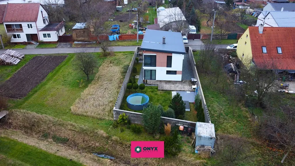 Za domem je již vybudovaná odpočinková zahrada, přičemž celková plocha pozemku 409m2, je optimální velikostí, dle současných trendů.