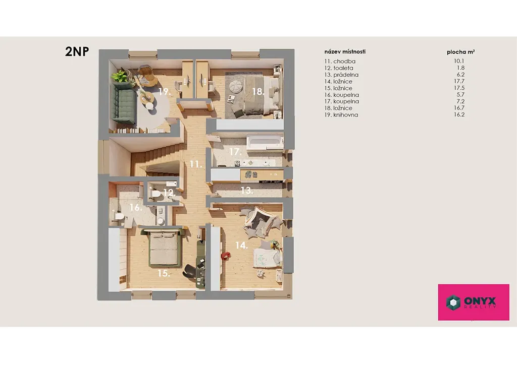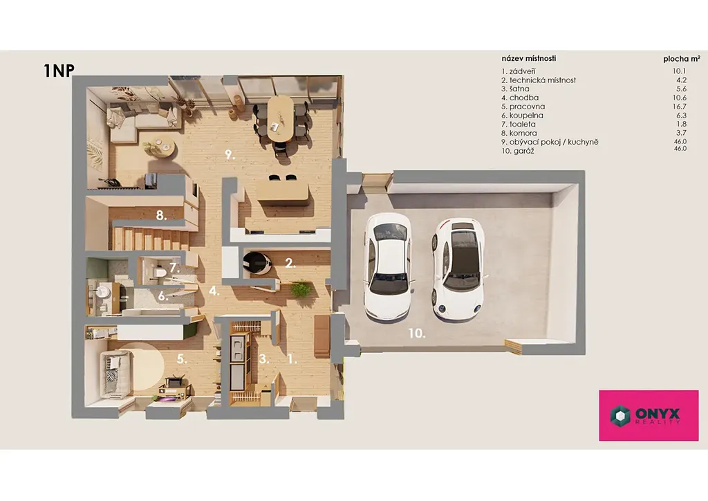 Celková užitná plocha domu činí 253,8 m². Součástí nabídky je terasa ze sibiřského modřínu o velikosti 50 m² a na ni navazující zahrada o výměře 227,2 m². Pozemek má celkovou rozlohu 561 m².