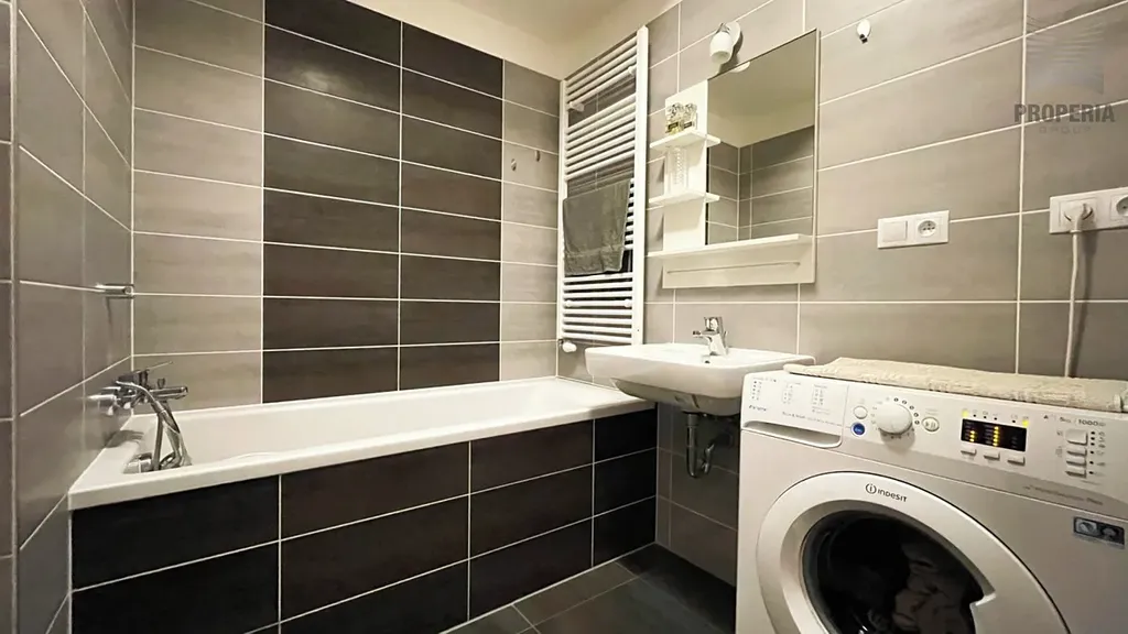 Dispozice bytu dále nabízí samostatnou ložnici, praktickou šatnu poskytující dostatek úložného prostoru a koupelnu s vanou a toaletou. Byt je částečně vybavený a v oknech jsou instalovány žaluzie pro větší komfort i soukromí.