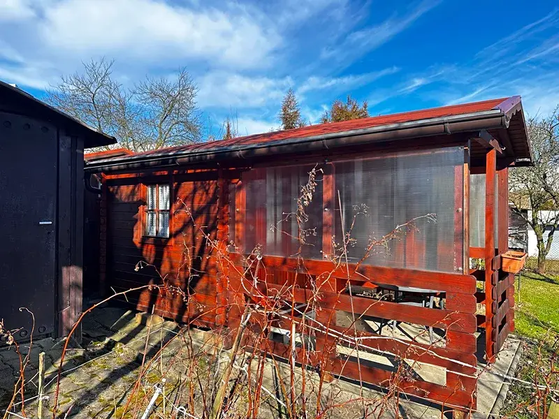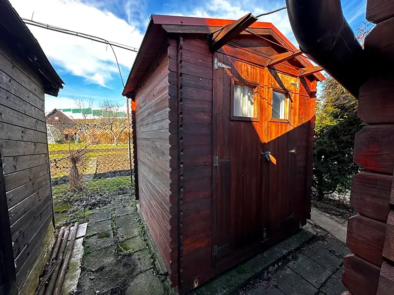 Za chatkou se nachází dřevěný sklad o výměře 5 m2, v němž je rovněž rozvedená elektřina. Sklad byl využívaný na uložení zahradního nářadí a chemické toalety.