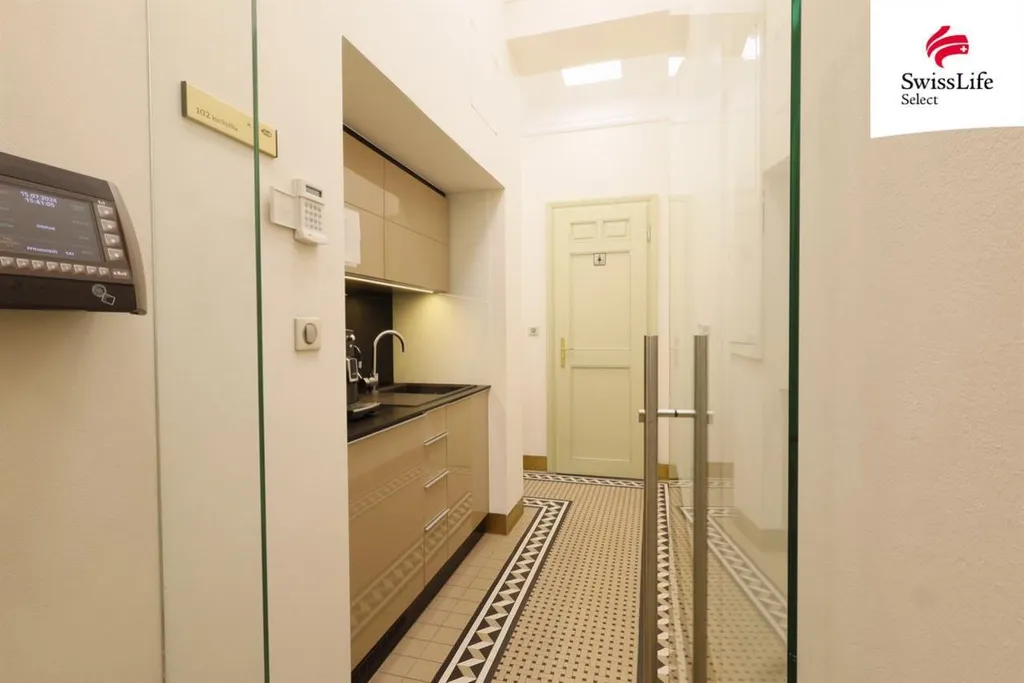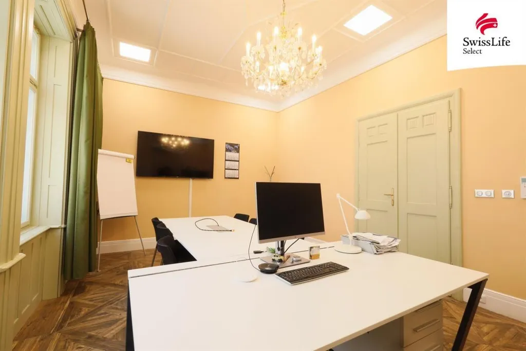 Tento vzácný objekt nyní disponuje jednou volnou kanceláří o výměře 15 m2 plus plochy připadající na sociální zařízení, kuchyňky a společné prostory. Dům je členěn do jednotlivých samostatně pronajímatelných částí, kdy každá nabízí uživatelům komfortní sociální zařízení a čajovou kuchyňku. Jednotlivé části mají samostatné měření energií. Objekt nabízí reprezentativní prostory.