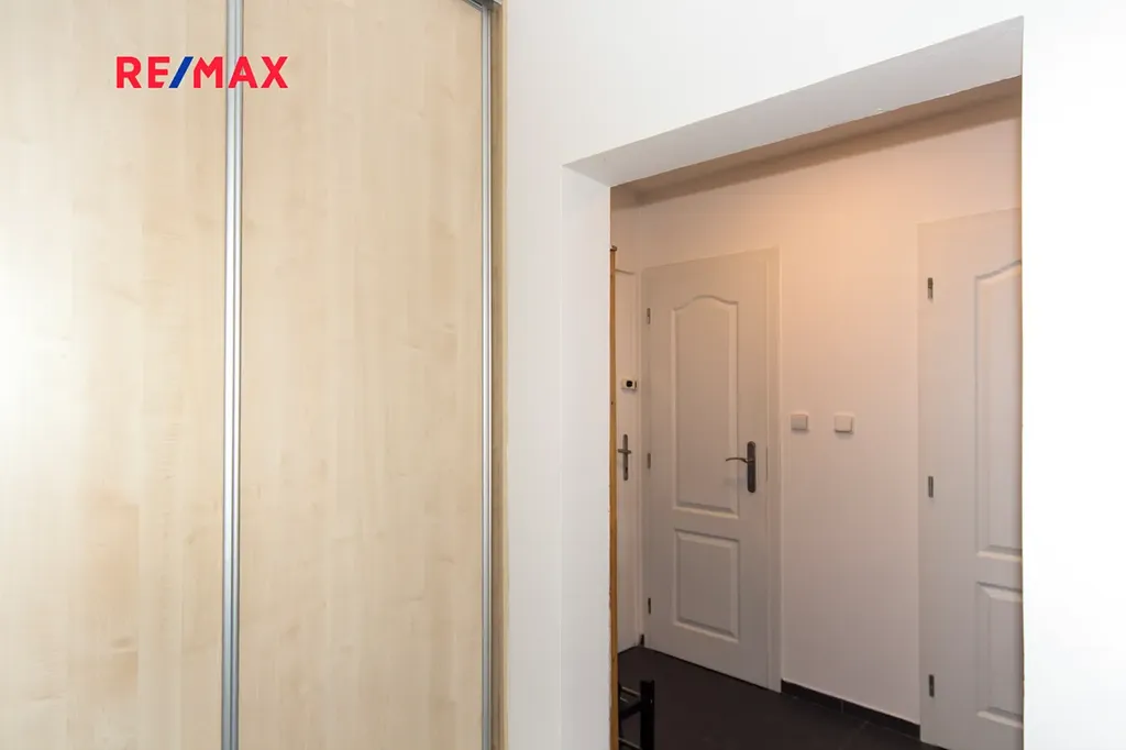 Nabízíme k pronájmu byt 2+kk o velikosti 49 m2 plus dvě zasklené lodžie (celkem 6 m2) ve 12. patře panelového domu. Celkem má tedy byt 56 m2. Má dva pokoje, z každého je možný vstup na lodžii západním směrem. V jednom z pokojů je kuchyňský kout vybavený elektrickou varnou deskou a lednicí. Koupelna a WC jsou vyzděné, po rekonstrukci, v koupelně se nachází sprchový kout a pračka. V bytě je prostorná šatna s vestavěnou skříní, další skřín je i v předsíni. Na podlaze jsou nové koberce.