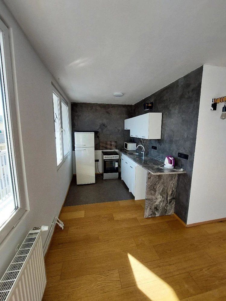 Nabízíme k pronájmu světlý a prostorný byt 1+1 s balkonem , který se nachází v Mostě, na ulici Josefa Suka. Byt je umístěn ve 12. patře udržovaného domu .
