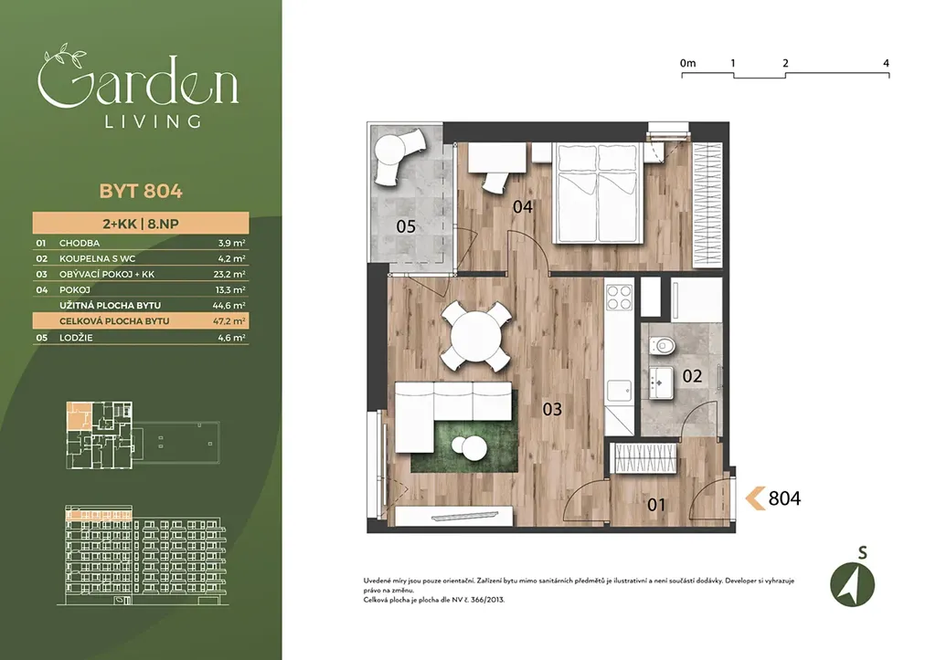Nabízíme exkluzivní byt 2+kk o celkové výměře 44,6 m2, který je umístěn v sedmém patře budovy s výtahem. Součástí bytu je i lodžie 4,6 m2.