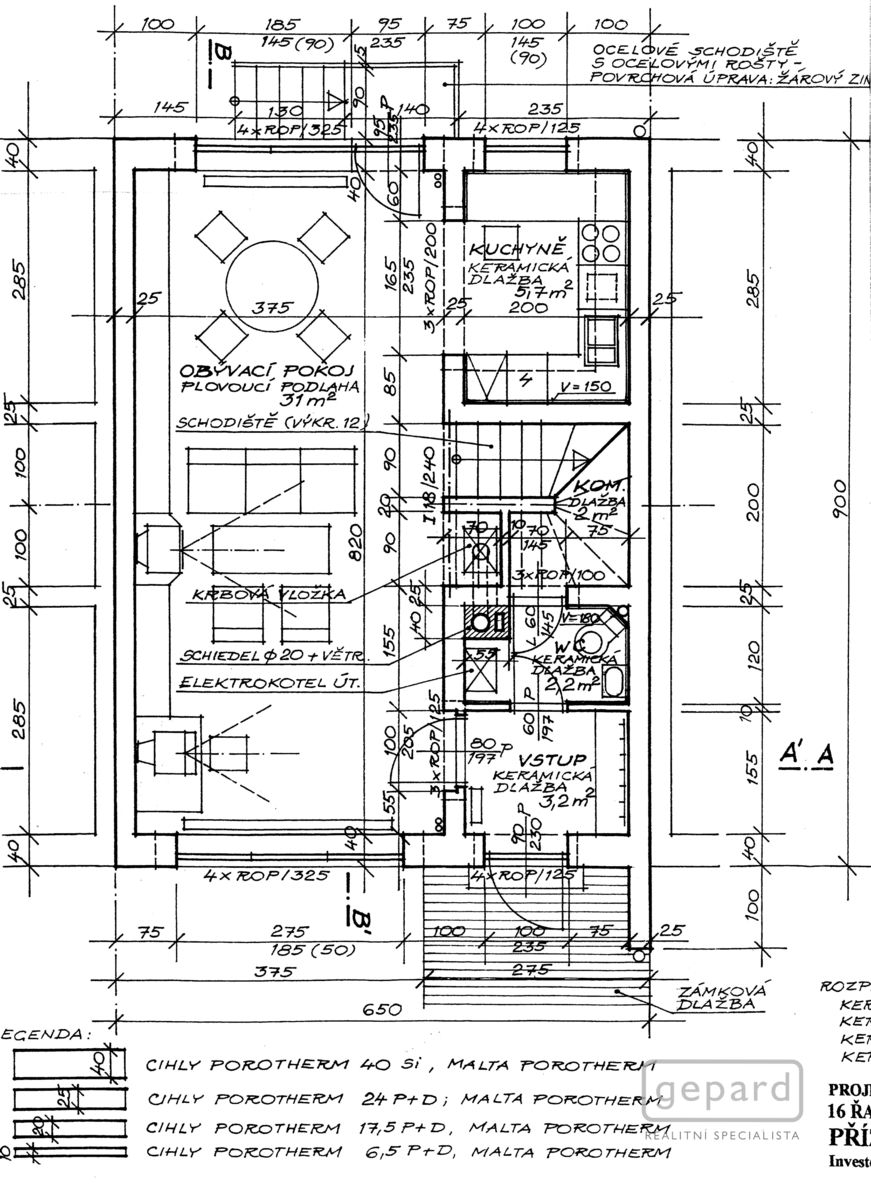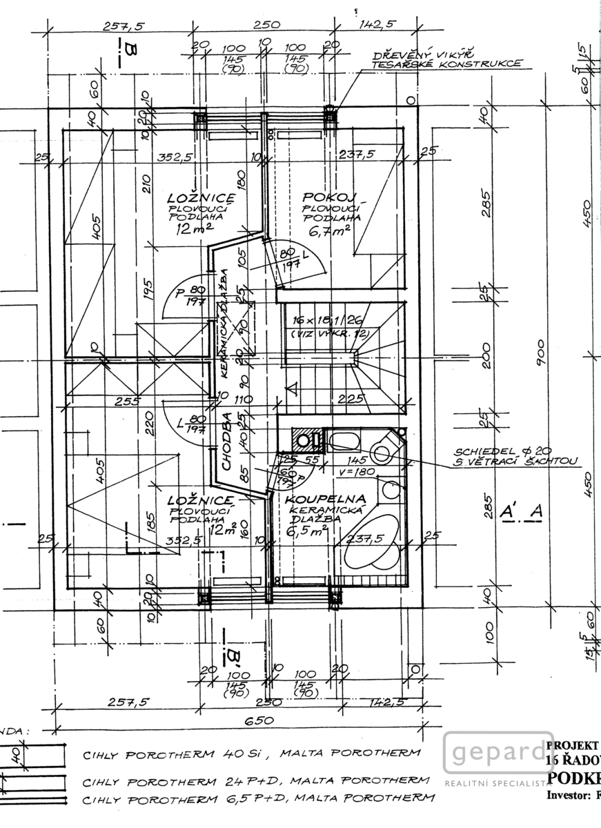 2/ Patro (obytné podkroví): chodba, 3x pokoj, koupelna+WC.