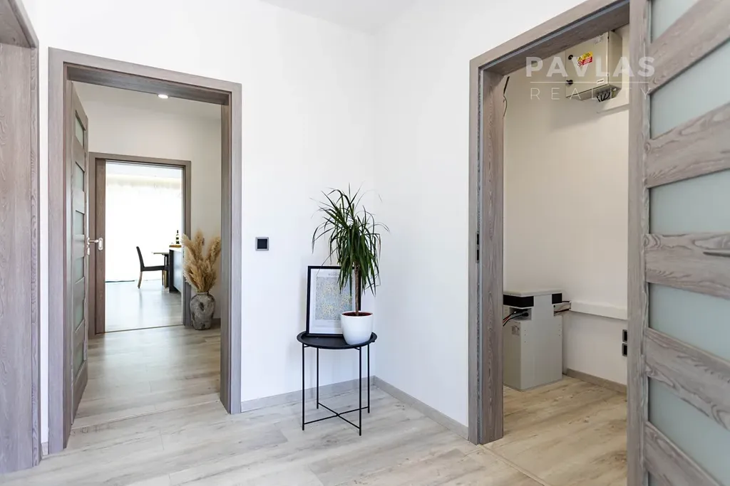 Dům, zkolaudovaný v roce 2019 a obývaný od roku 2020, je připojen na obecní vodovod i kanalizaci. Vytápění je řešeno podlahovým topením po celém domě, což zajišťuje rovnoměrné a příjemné teplo. Obytná plocha činí 110 m² a pozemek má rozlohu 779 m².