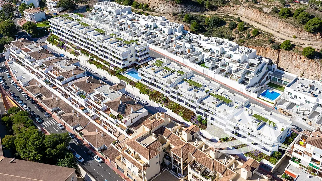 Benalmádena je živé pobřežní město s plážemi, promenádou a přístavem Puerto Marina plným restaurací a kaváren. Oblíbený park Parque de la Paloma nabízí zeleň a prostor pro odpočinek, v okolí se nacházejí golfová hřiště, školy i kompletní občanská vybavenost. Letiště v Málaze je vzdálené přibližně 15 kilometrů, což zajišťuje rychlé a pohodlné spojení po celý rok.