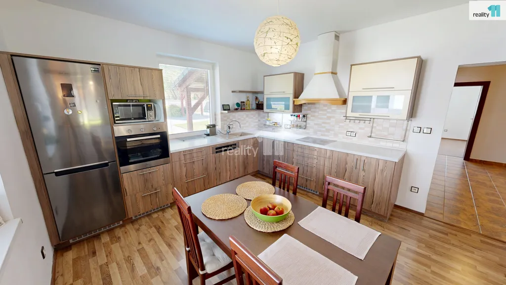 Dovoluji si nabídnout ke koupi rodinný dům v Obci Ústrašín. Přízemní bungalov se nachází na pozemku o výměře 1139m². Obytná plocha domu je 110m² a dispozice 4+kk. Součástí domu je také zastřešená terasa o výměře 28 m². Dispozice domu je následující: Vstupní chodba, samostatné WC, technická místnost, kuchyně s obývacím pokojem, ložnice, koupelna, spíž, pokoj I. a pokoj II. Dům je postaven z obvodového zdiva 300mm + zateplení. Půdní prostor je připraven k vybudování dalších pokojů. Vytápění je elektrické - podlahové. V domě je také k dispozici krbová vložka s rozvodem tepla po celém domě. Objekt je napojen na obecní vodovod. Odpady jsou svedeny do vlastní ČOV. Do domu je přivedena samozřejmě elektřina. Dům je kompletně dostavěný včetně zpevněných ploch a oplocení. Nový majitel jistě ocení kryté stání pro dva osobní automobily, dílnu a prostorný dřevník. Obec Ústrašín se nachází nedaleko města Pelhřimov. K dispozici máme 3Dvirtuální prohlídku nemovitosti, projektovou dokumentaci i náklady na roční provoz domu. Jsme také schopni zajistit hypoteční úvěr. V případě zájmu o další informace kontaktujte realitního specialistu. Ev. číslo: 27443.